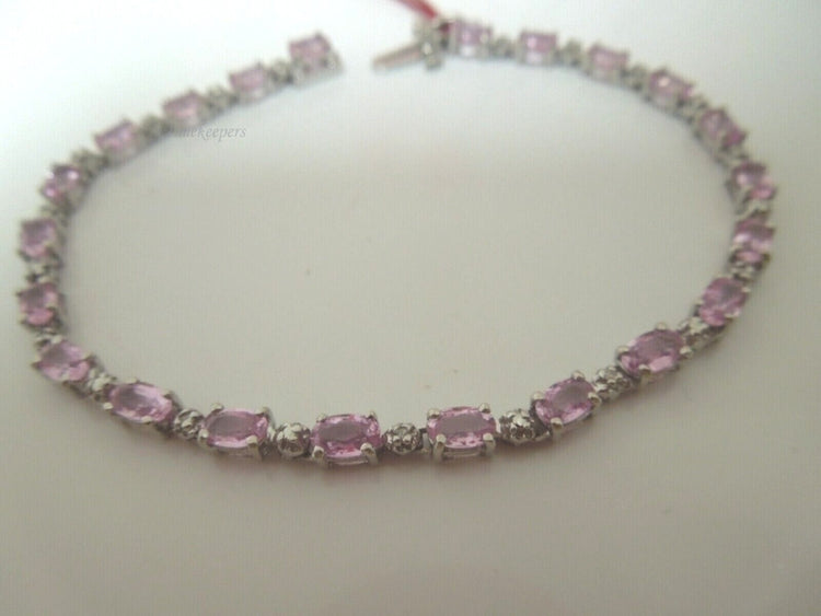 For Sale: (1) r934 14kt White Gold Pink Stone Tennis Bracelet 7" /7.5g