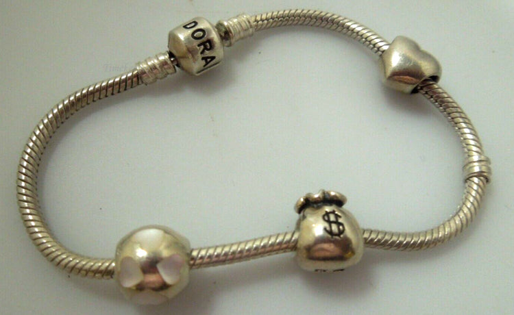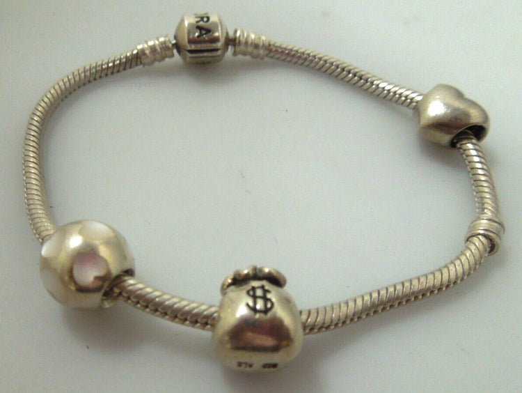 s351 Authentic Pandora Sterling Silver Bracelet with cute charms
