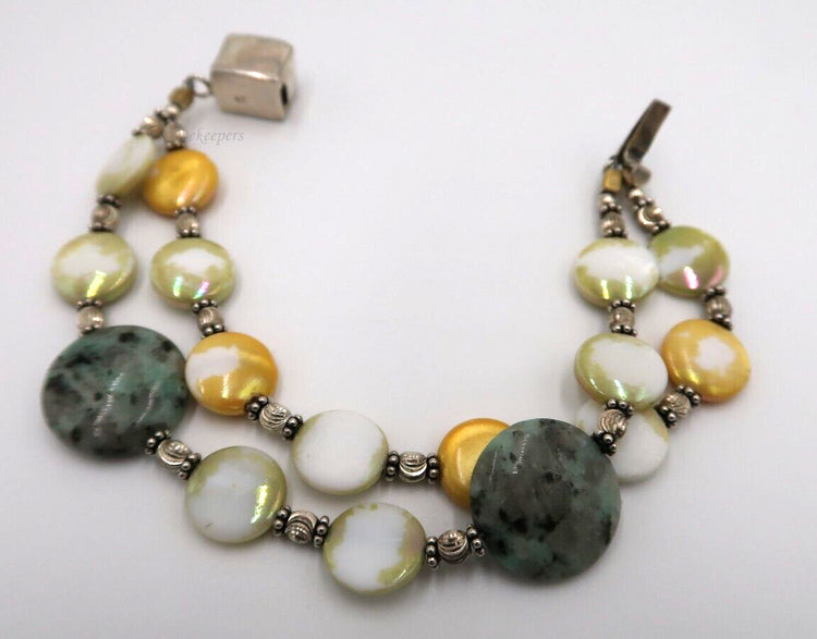 The bracelet is beautiful beads and silver beads attached in between.