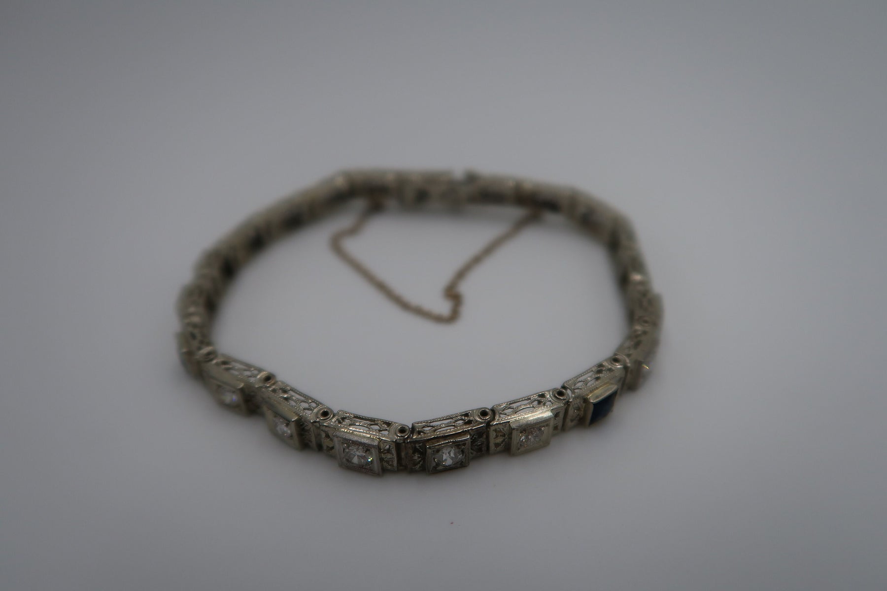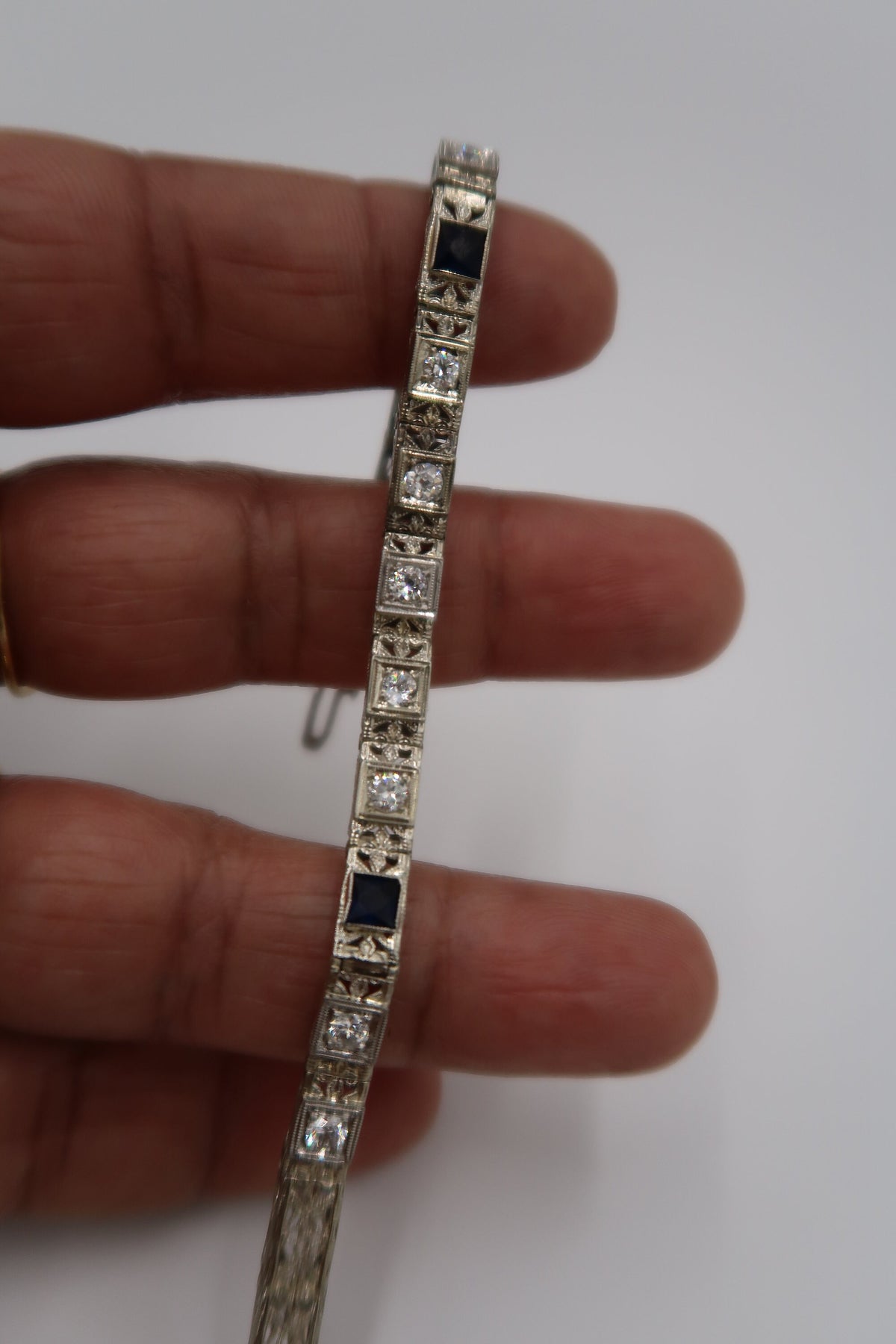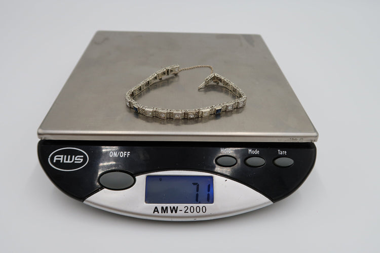 For Sale: (1) t238 10kt White Gold Diamond 0.75 its Sapphire Bracelet 7"/7.1g