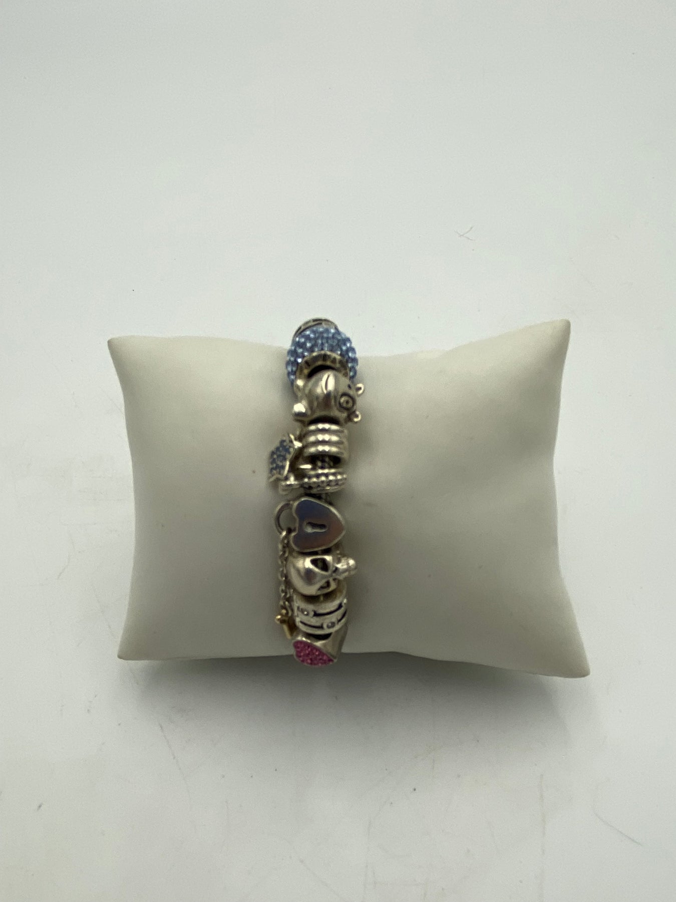 Pandora S925 Sterling Silver Bracelet with high Quality European Brand Charms. The Charms are a mix of S925 silver plated, antique oxidized silver, with glass stones.