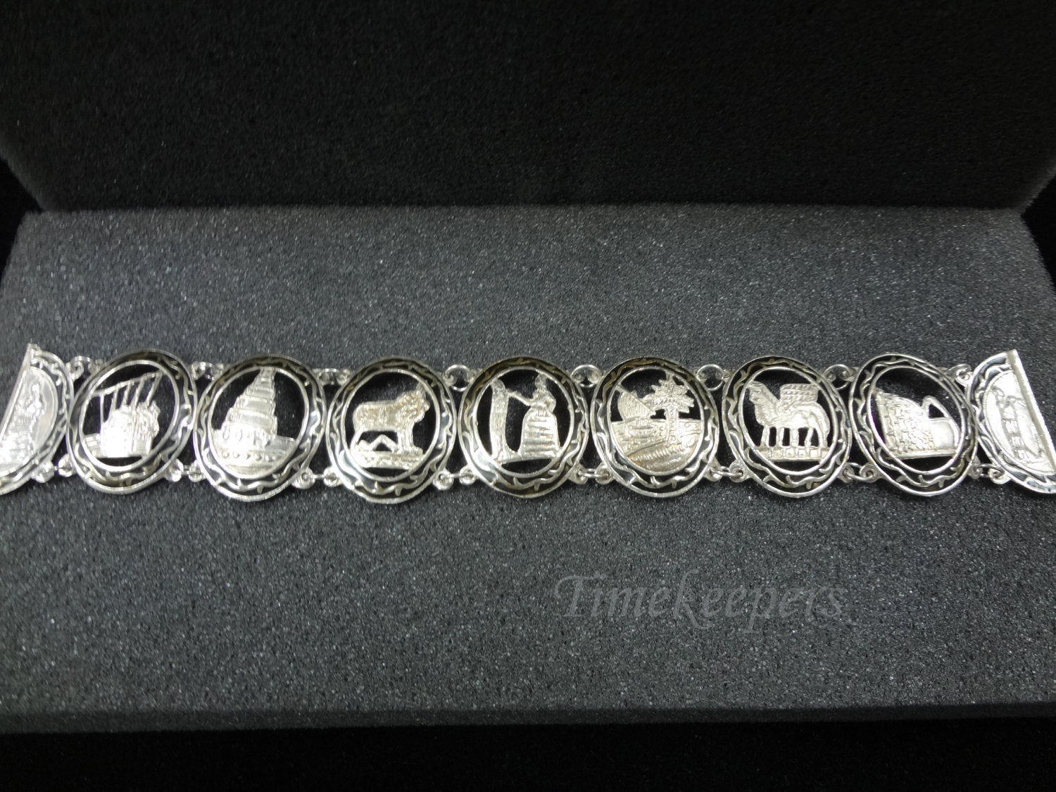 For Sale: (1) Sterling Silver Cut Out Medallion Link Bracelet