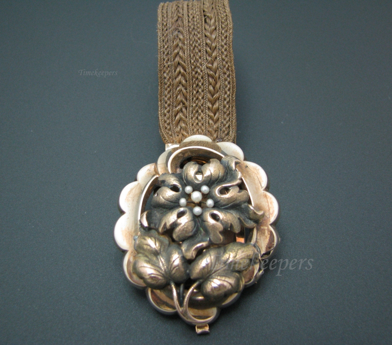 This is a very nice piece, great workmanship on weaving. This is a mourning bracelet made from woven hair with a beautiful 10kt yellow gold flower center piece featuring (5) seed pearls. The bracelet does have a 10t yellow gold slide closure with a safety chain. The woven hair bracelet is in very good shape considering its age. No frays, or split ends =)