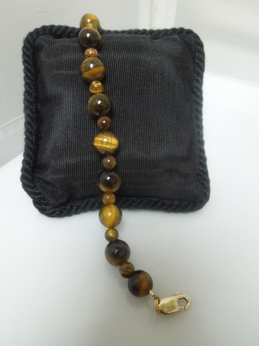 r821 Vintage Tigers Eye Bracelet 10 & 6mm Tiger Eye Bead Bracelet- Couple or Friendship Bracelet Gold Filled Clasp