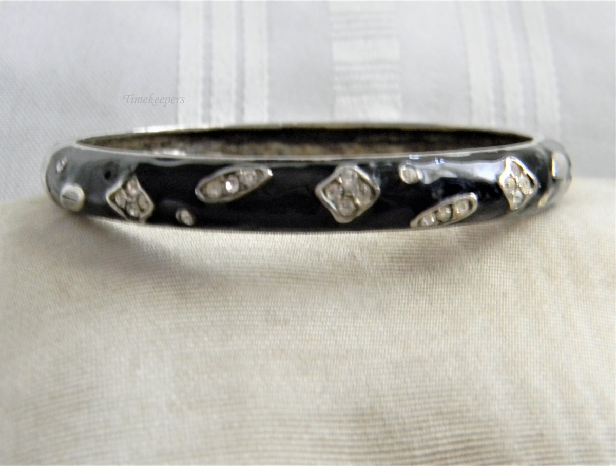 p239 Pretty Silver tone Bangle with Black Enamel and Rhinestones