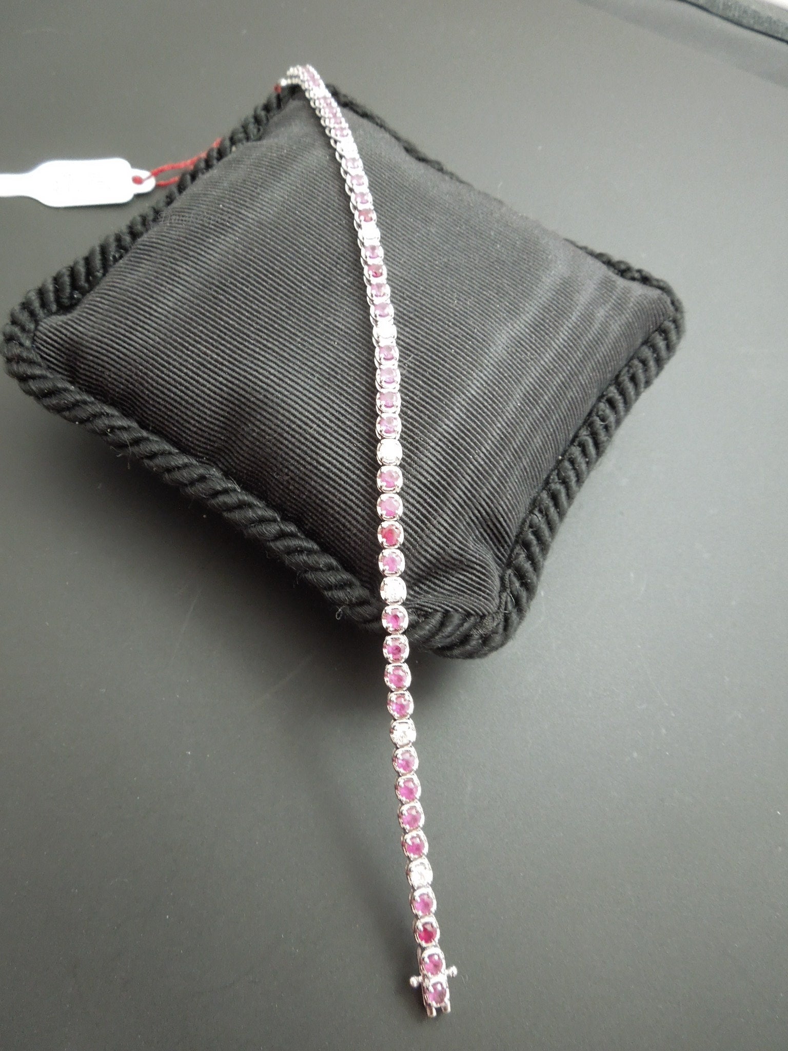 b934 Stunning 14kt White Gold Ruby and Diamond Tennis Bracelet