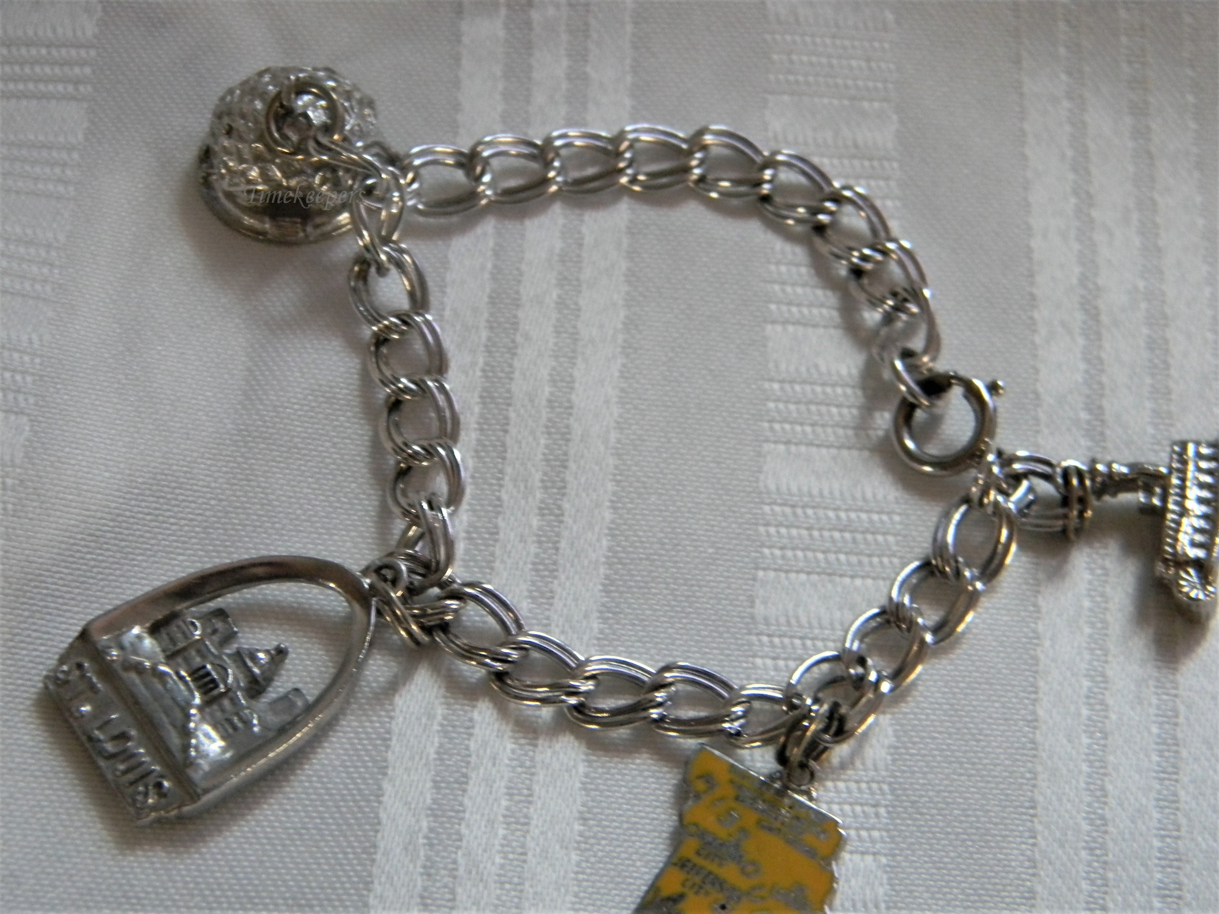 j717 Nice Silver Charm Double Link Bracelet with 4 St. Louis Charms