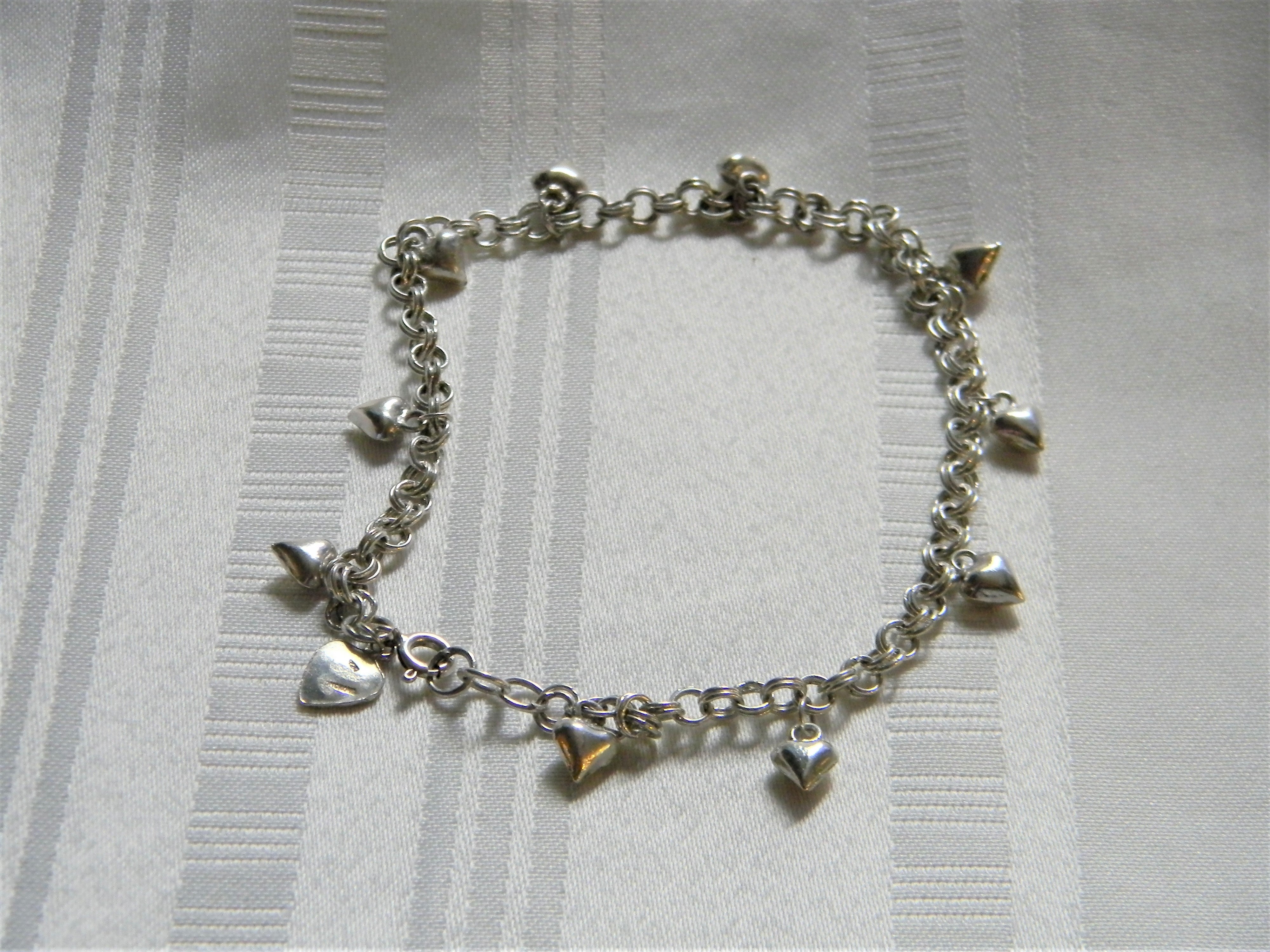 h421 Beautiful Sterling Silver Link Chain Ankle Bracelet with Hearts