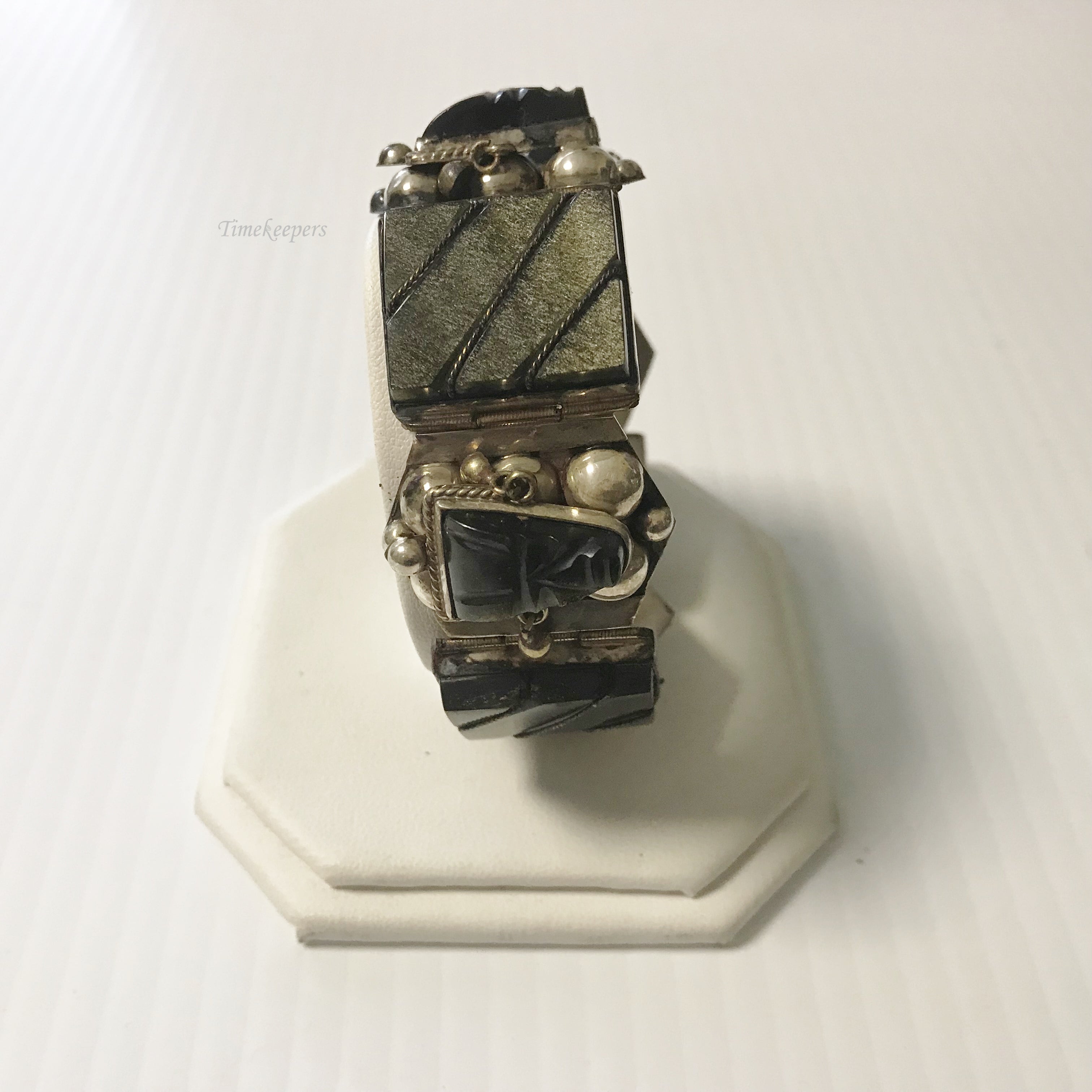 f099 Vintage Unique Dark Stone 925 Sterling Silver Link Bracelet 7" Long