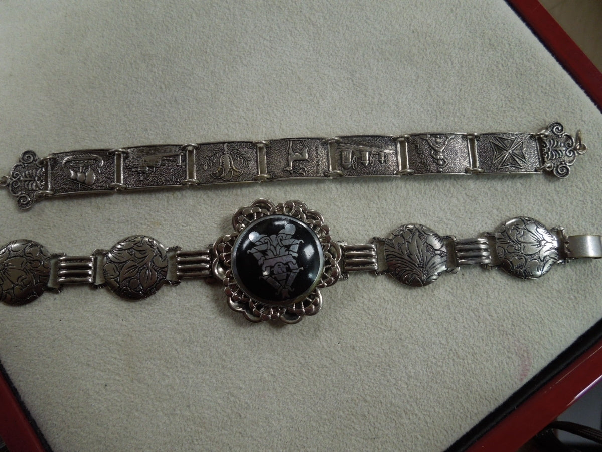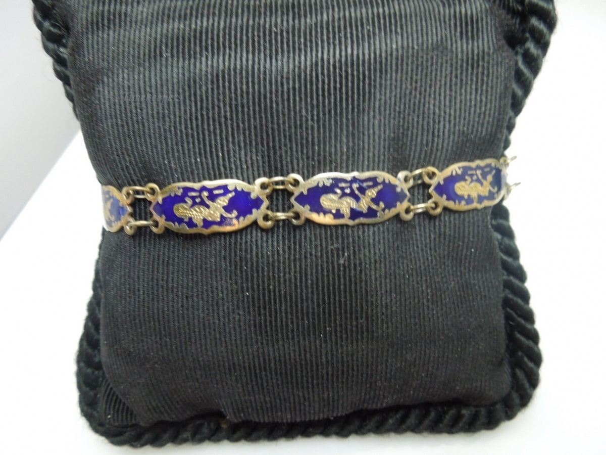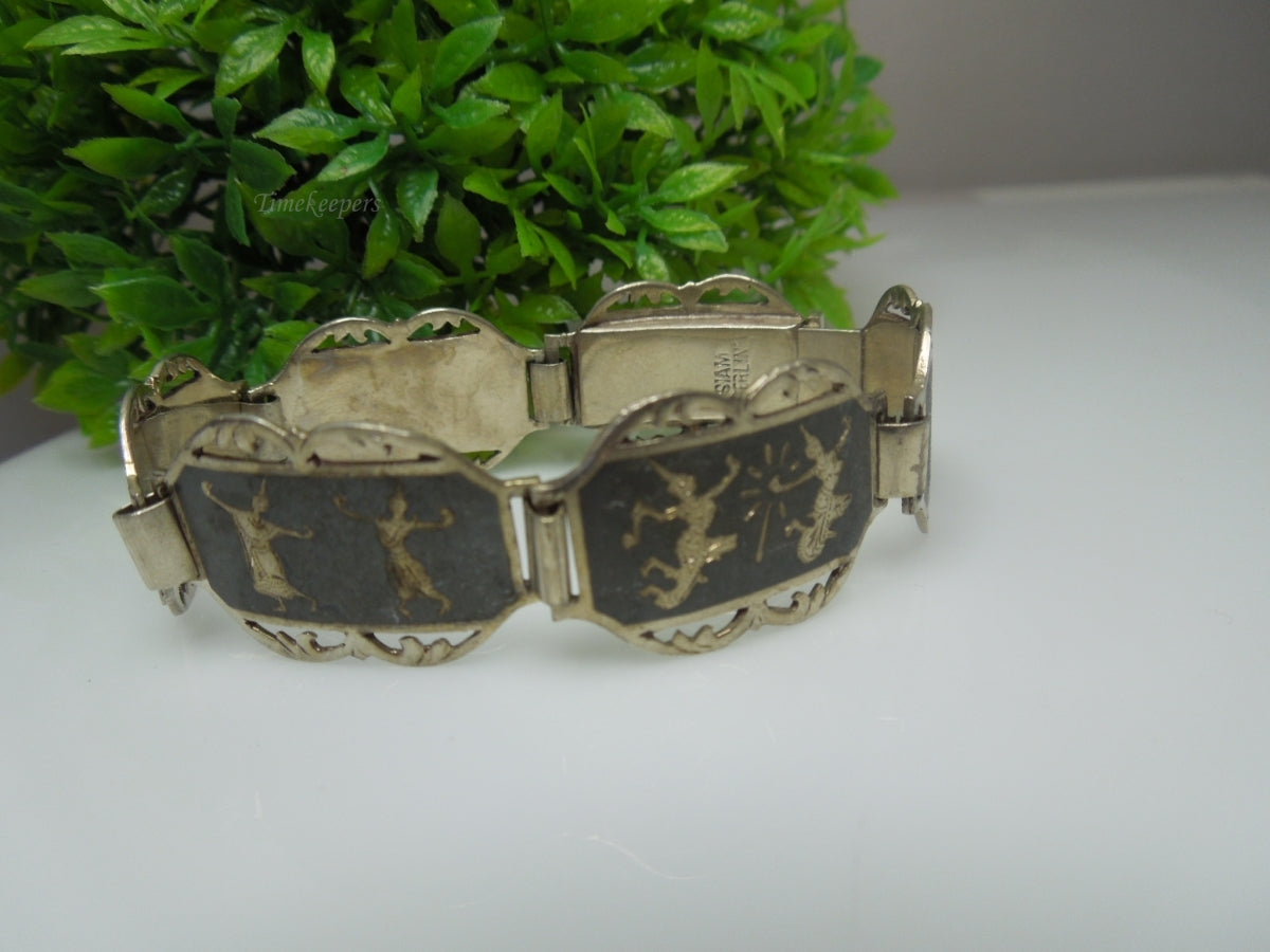 q194 1930 Sterling Silver 925 Siam Niello Exotic Dancers Bracelet 7"