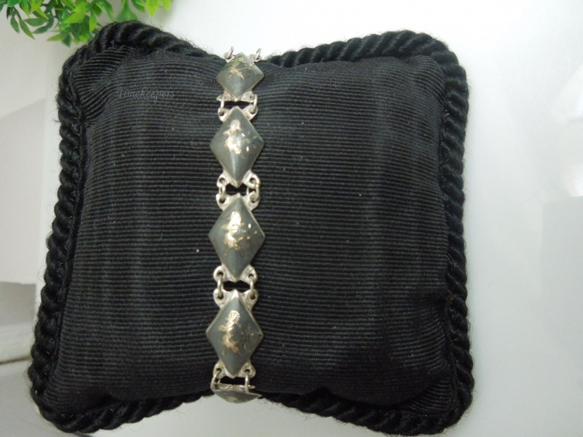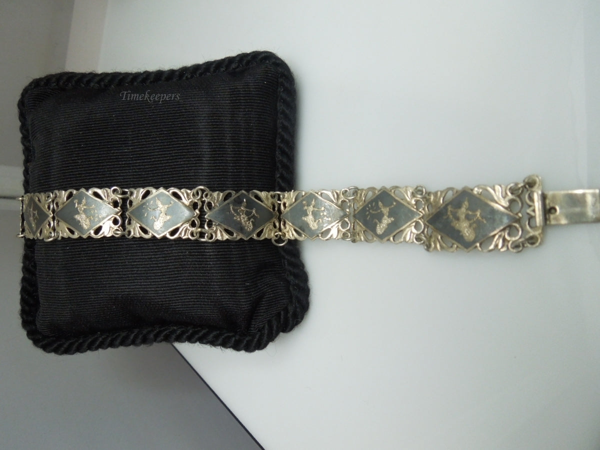 q193 1930 Sterling Silver 925 Gold Tone Siam Niello Exotic Dancers Bracelet 7"