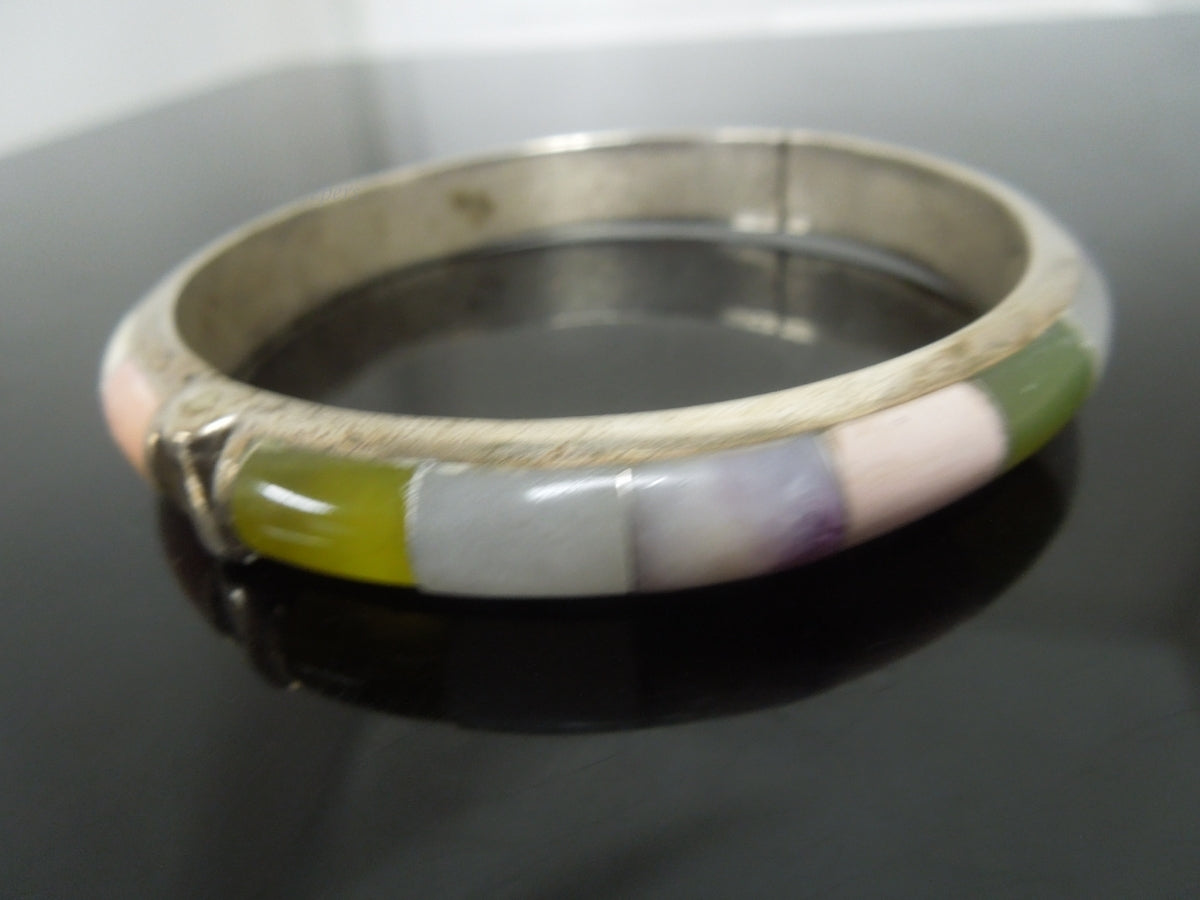 q459 Jay King 925 DTR China Inlay Hinged Bangle Bracelet