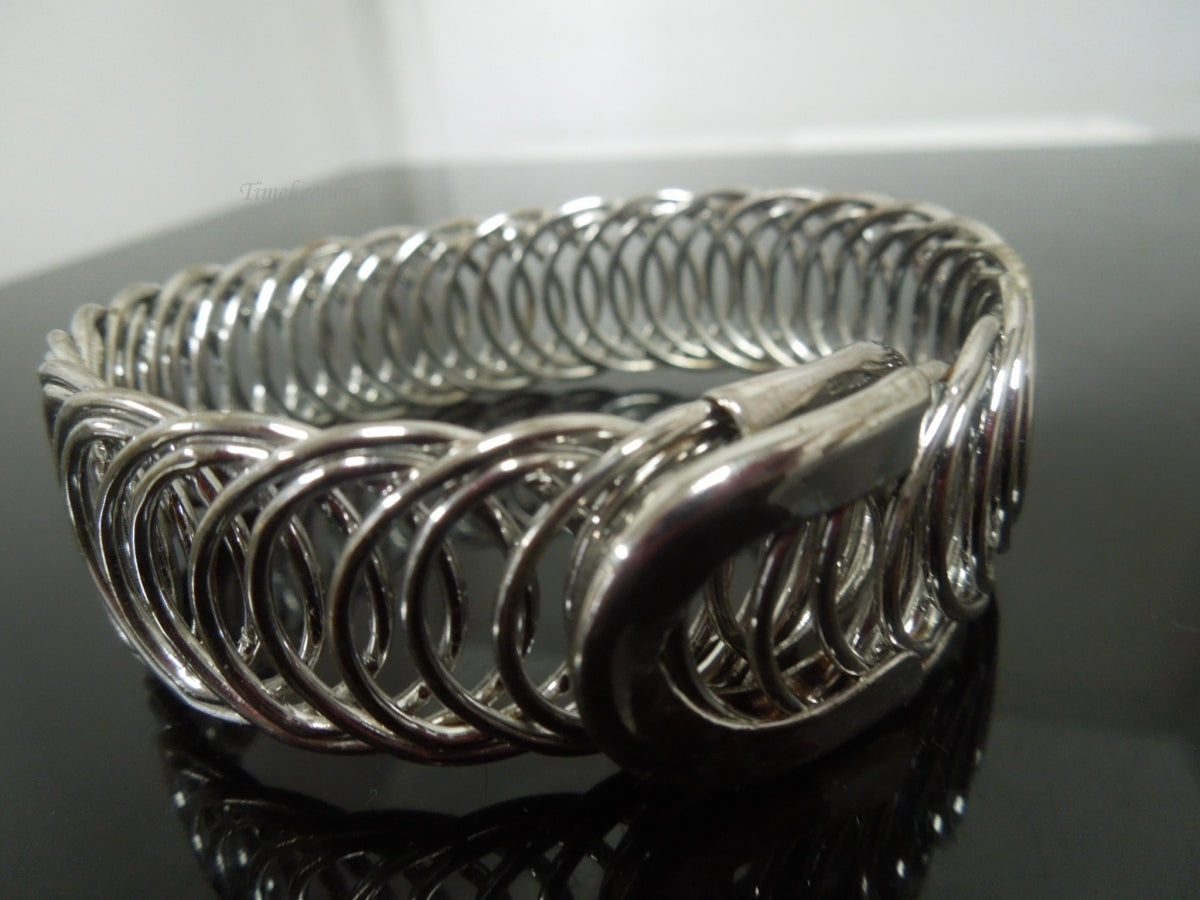q461 Silver Tone Mesh Bangle Bracelet Size Adjustable