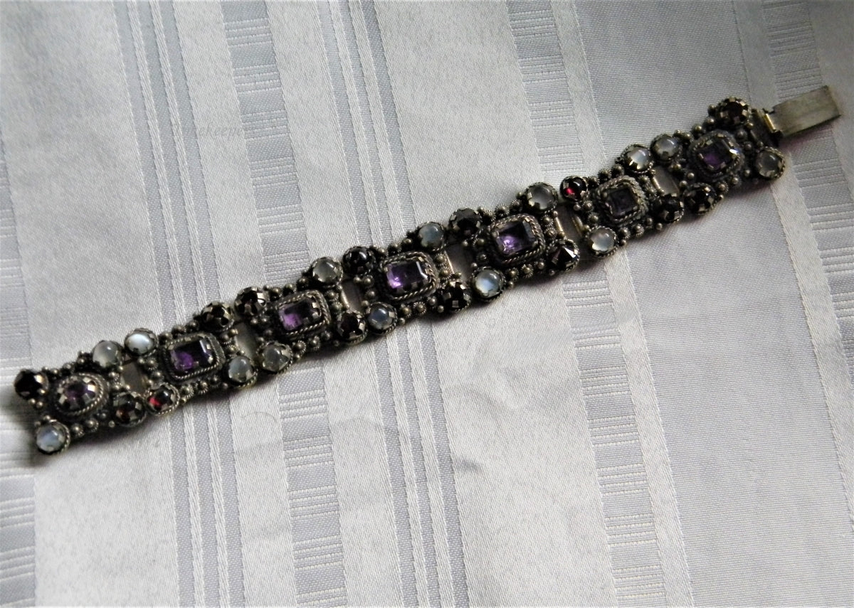 p121 Beautiful Silver Link Bracelet with White Purple and Red Rhinestones