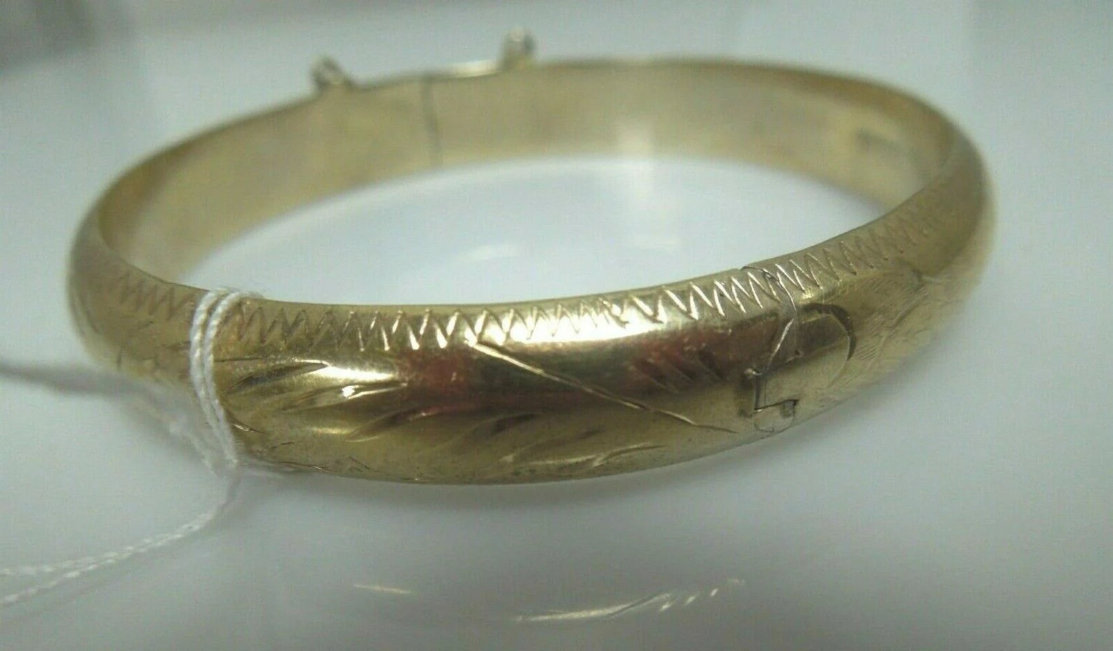 r151 Thailand Vintage Gold Tone Floral Etched Women Hinged Bangle