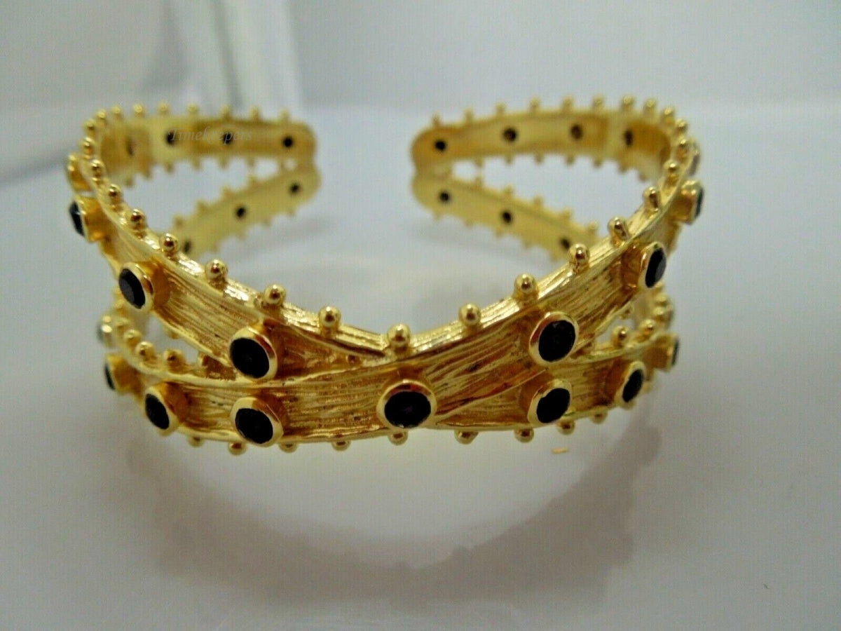 r412 Sterling Silver Gold plated/goldwash tiny black onyx all over Cuff Bracelet Made In India