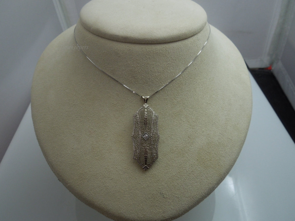 b043 Astounding Ornate 14k White Gold Filigree Pin / Brooch with Diamond