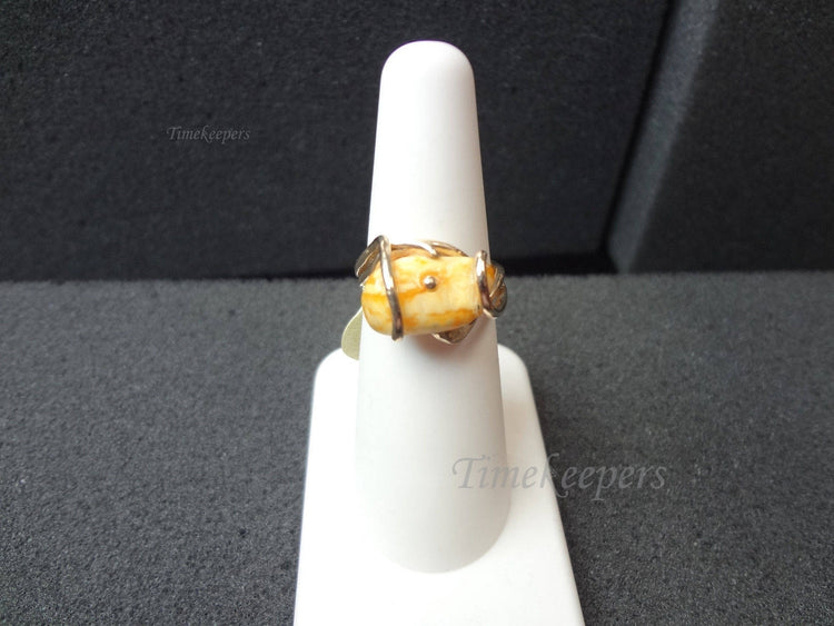 For Sale: (1) Marvelous 14k Yellow Gold Ring with Beautiful Russian Amber Stone in a very unique setting.