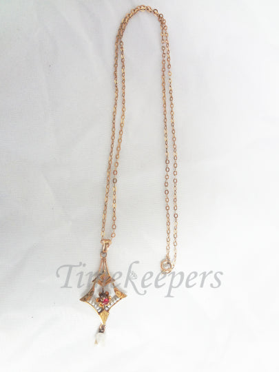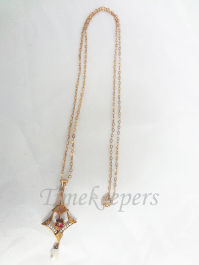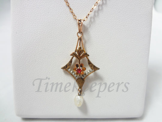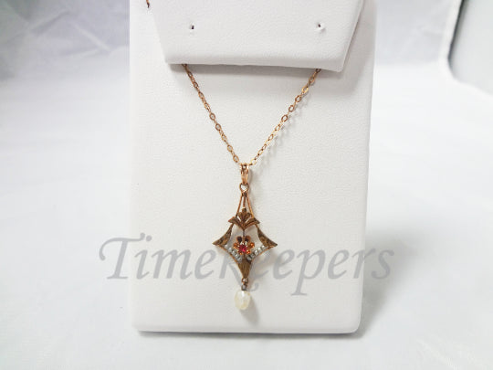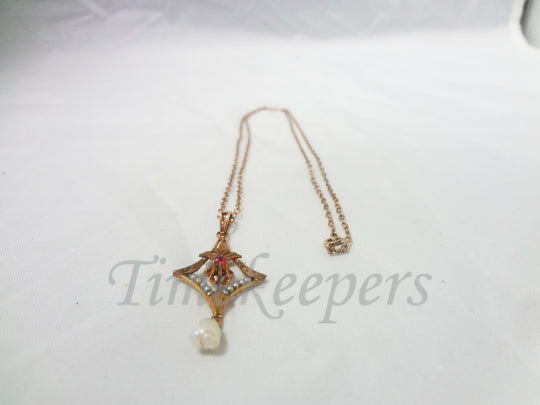 j169 Beautiful 1800's Victorian Ruby and Seed Pearl Necklace in 10k Yellow Gold