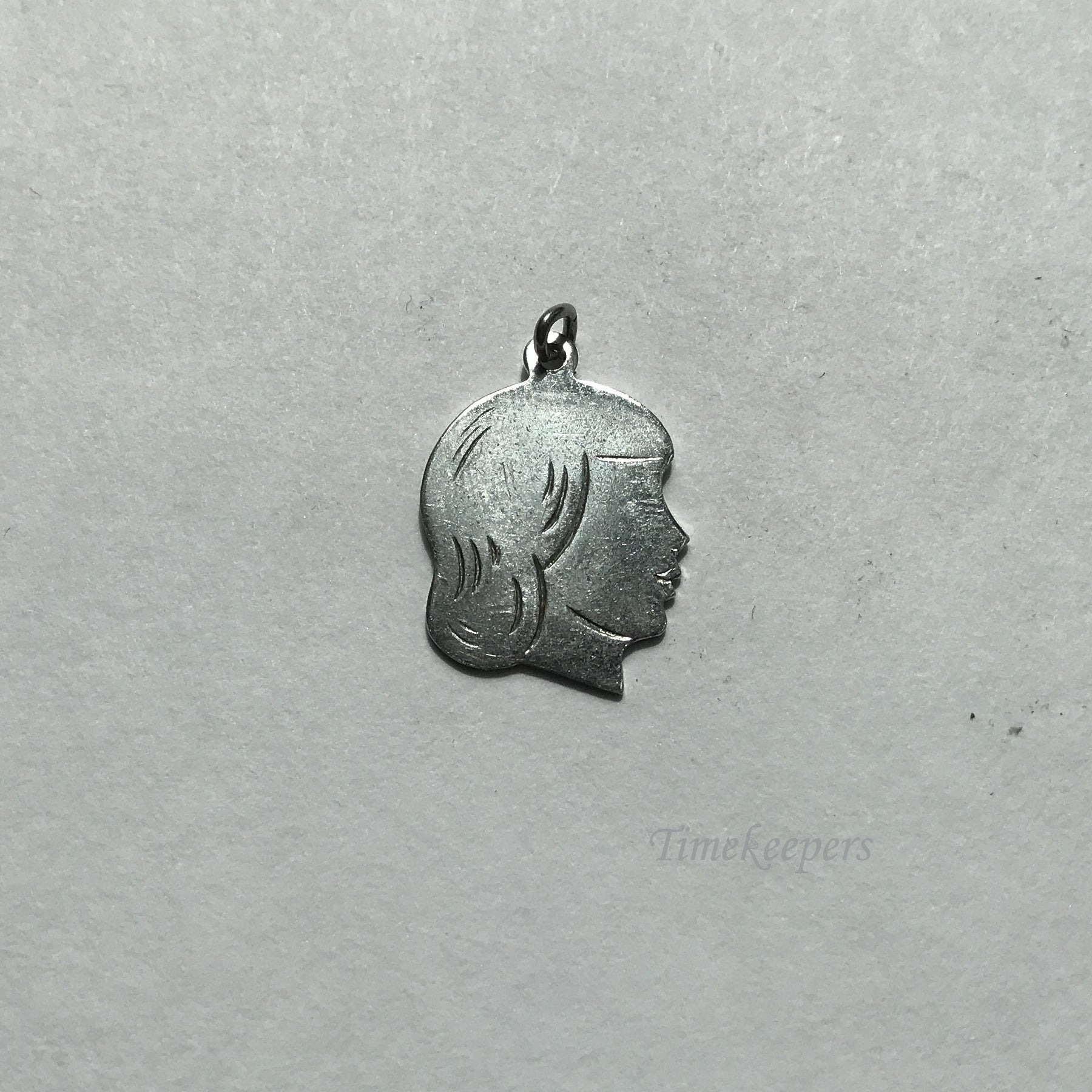 • Sterling silver (stamped) charm pendant. Miniature image of a girl front
