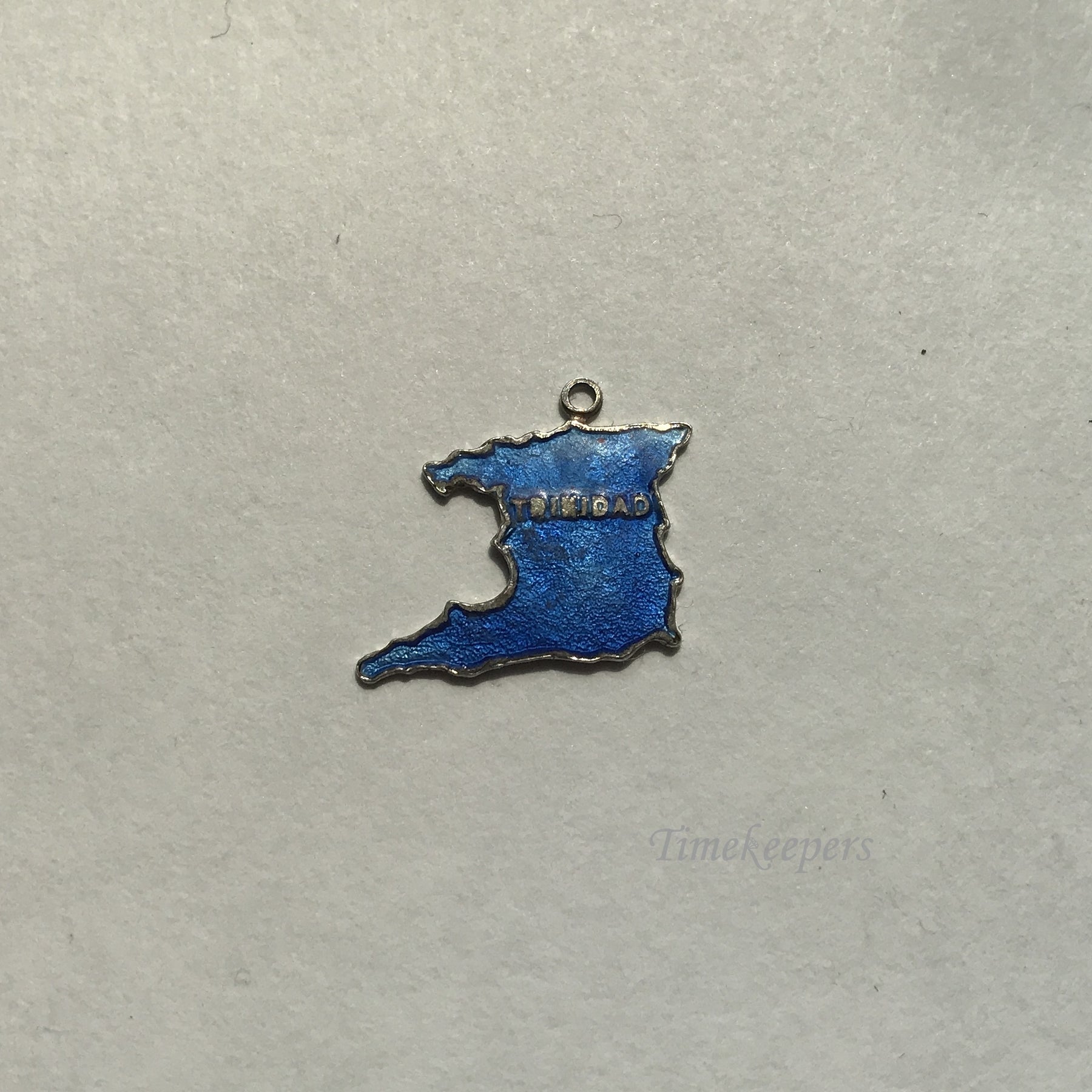 e026 Vintage Sterling Silver Blue Enamel Trinidad Charm Pendant
