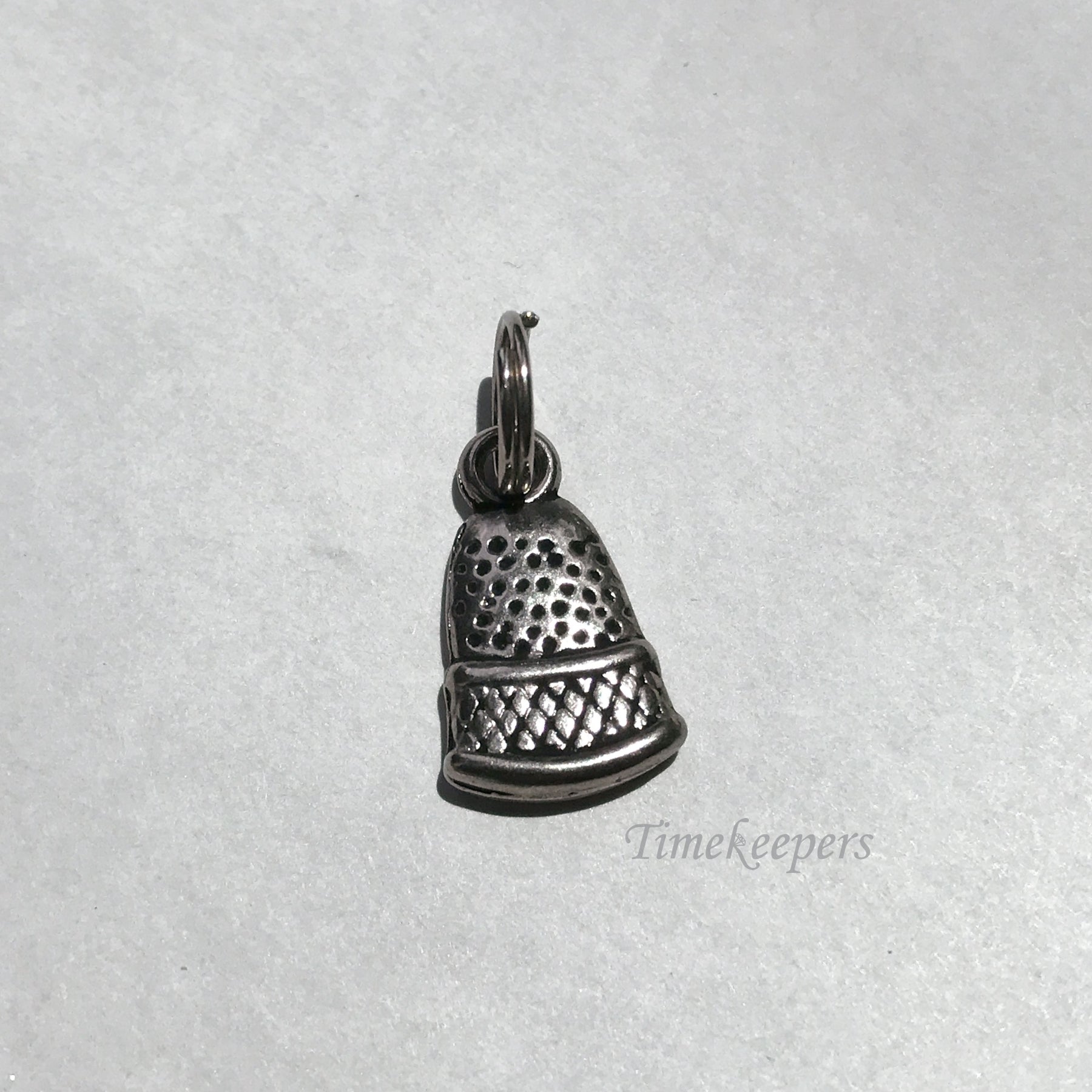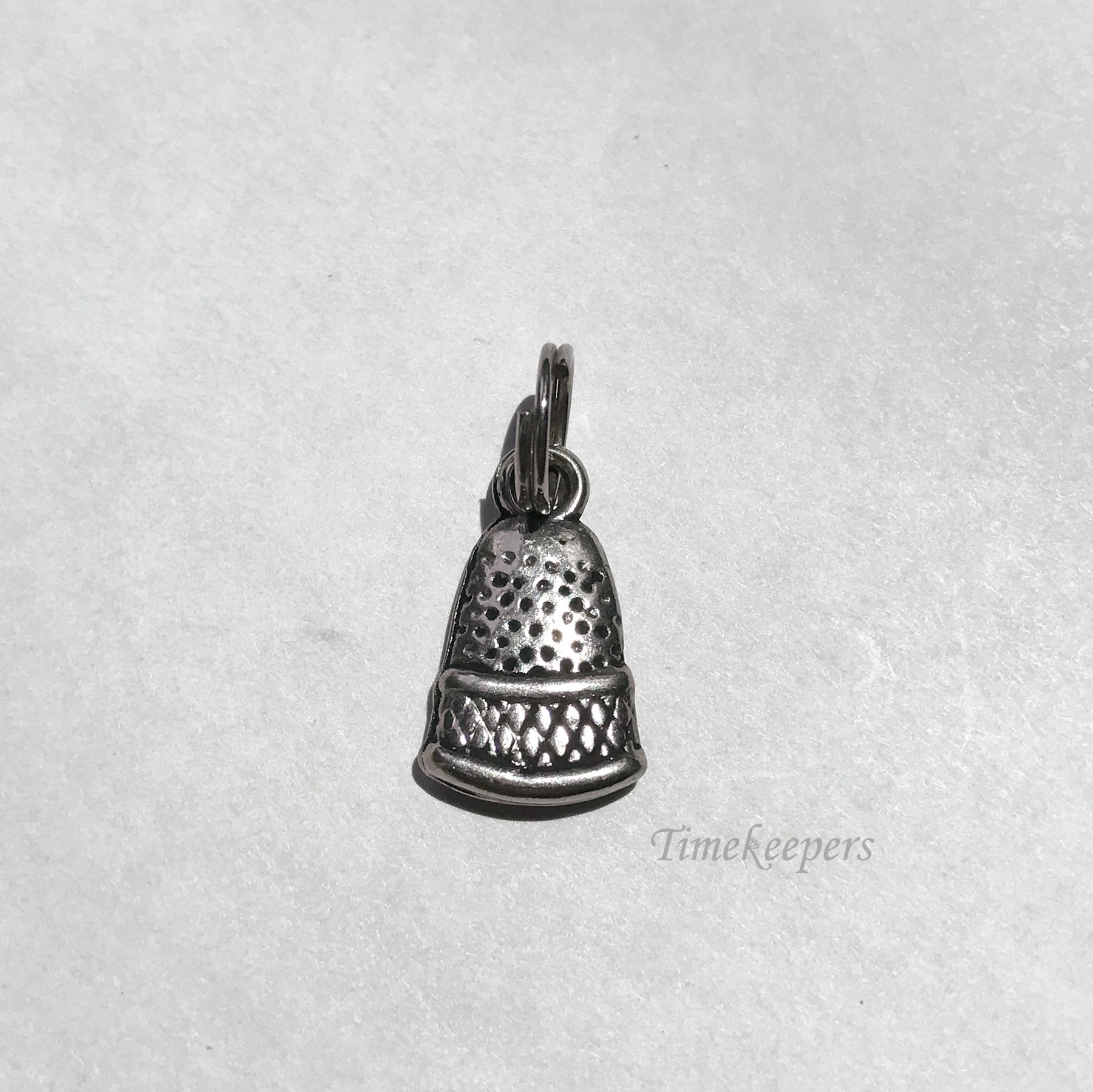 Silver tone charm pendant. Shaped as a thimble.