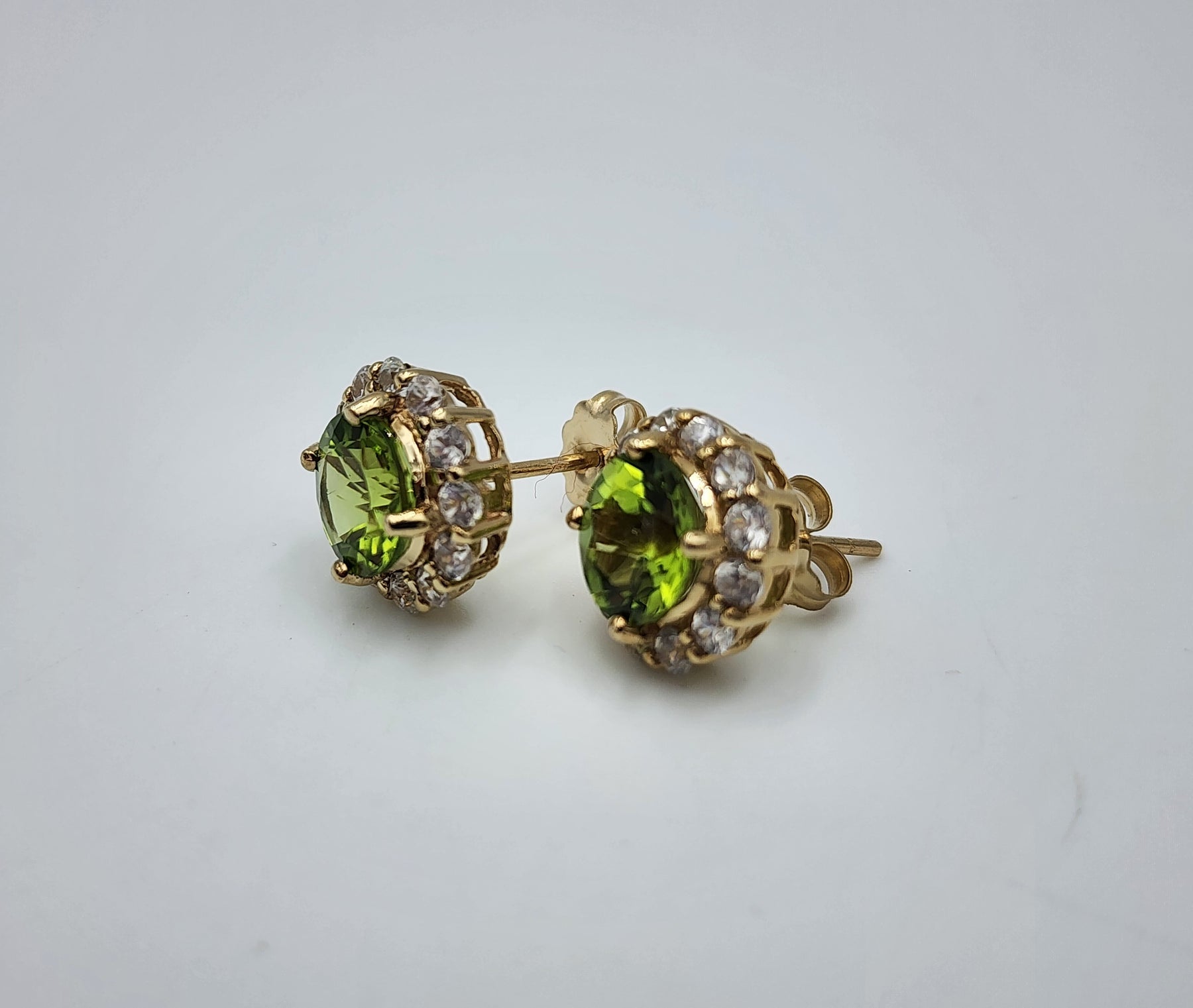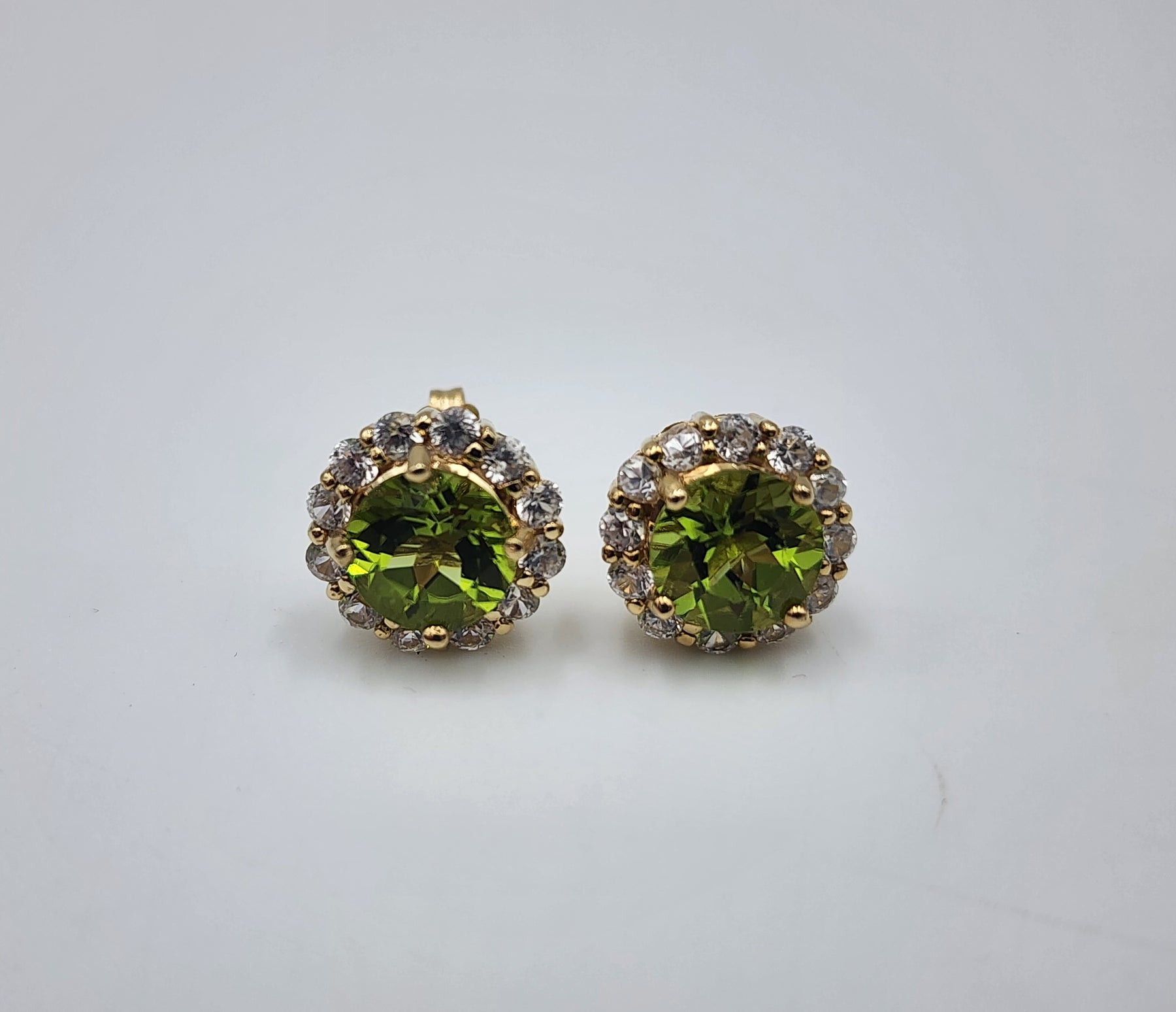 10kt Yellow Gold Peridot and CZ Stud Earrings