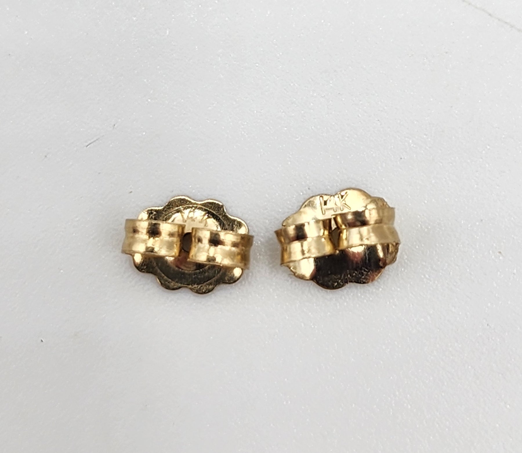 These are a nice pair of peridot stud earrings in 10kt yellow gold. They feature a halo of cz stones surrounding the pretty peridots. Posts are stamped 10k and backs are stamped 14k. Would be a nice gift for her!