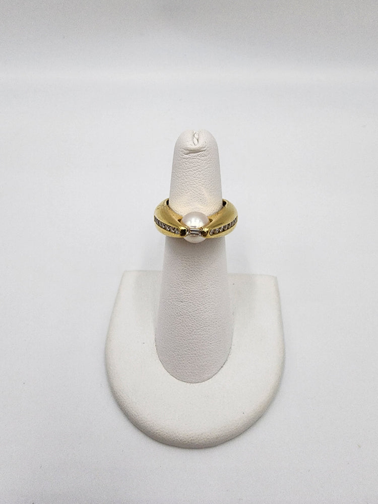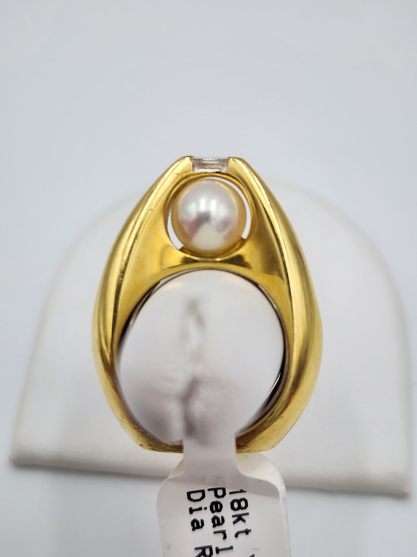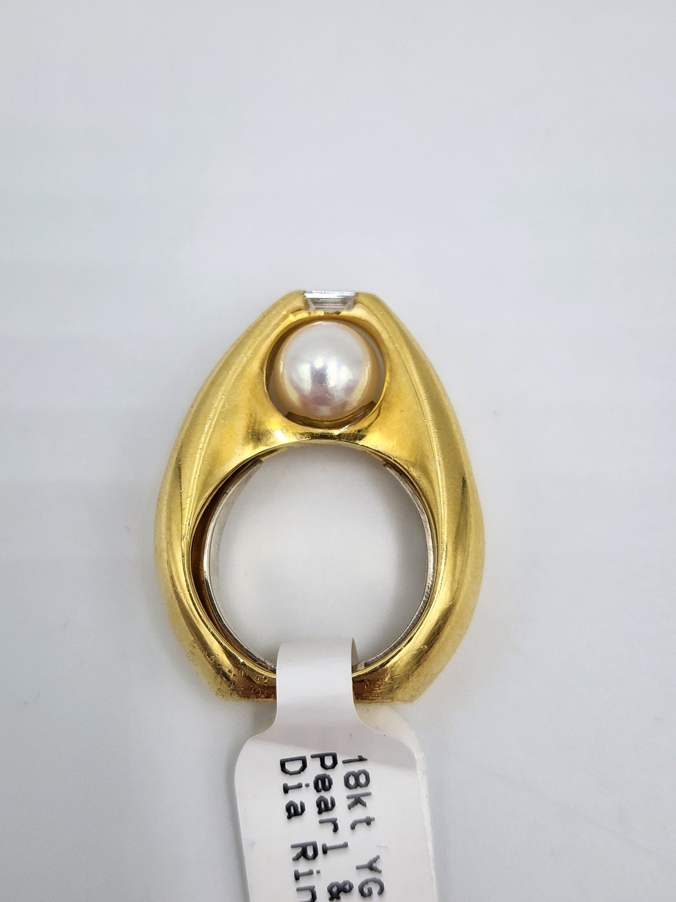 18kt Yellow Gold Freshwater Pearl and Diamond Ring