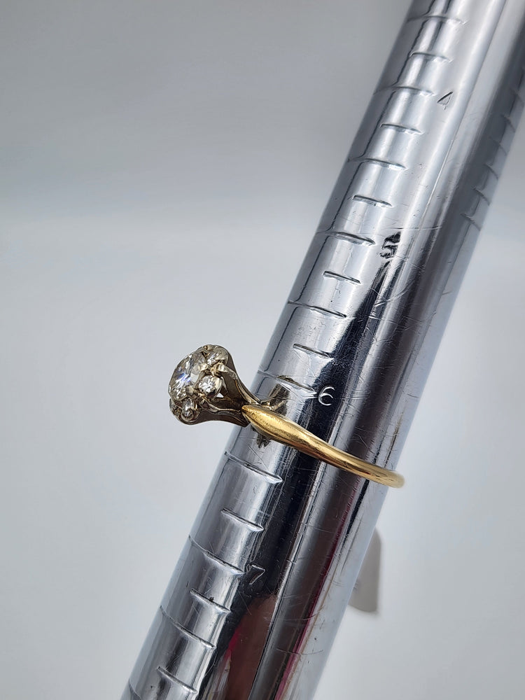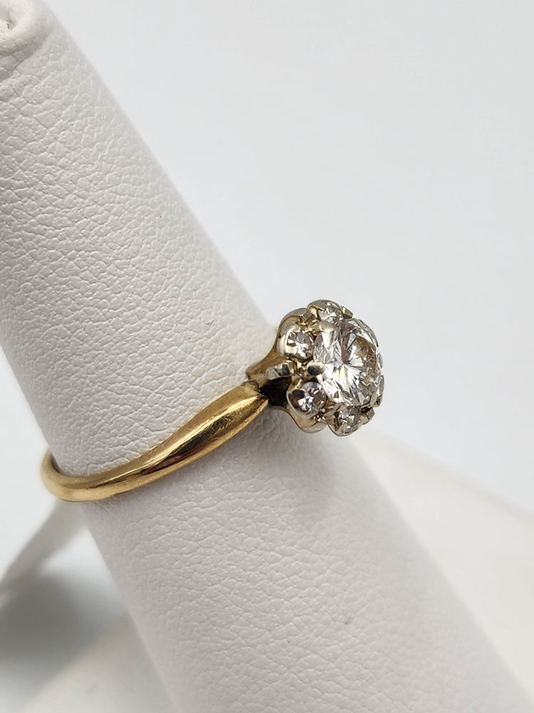 e662 Vintage 14kt Yellow Gold Diamond Cluster Engagement Solitare Ring