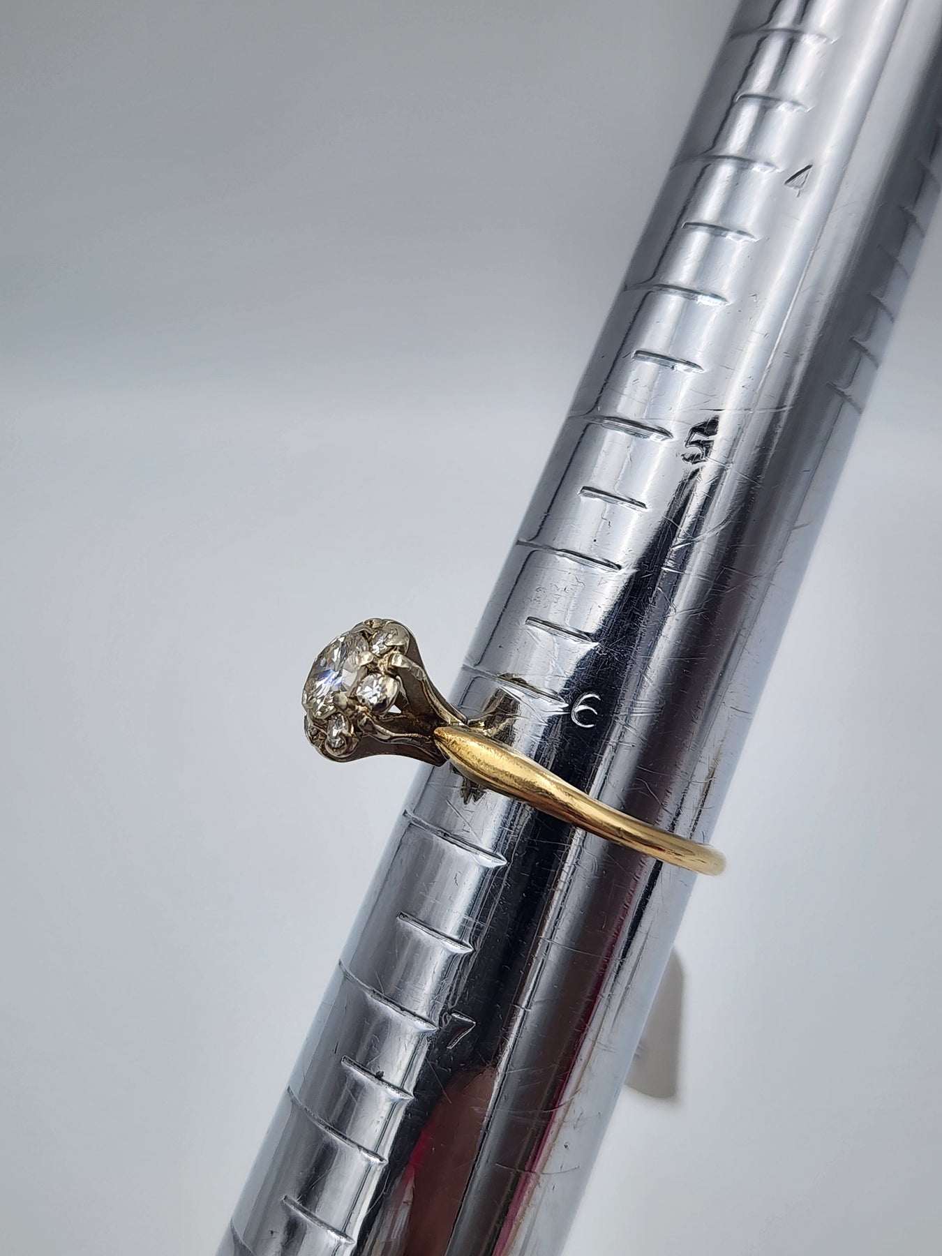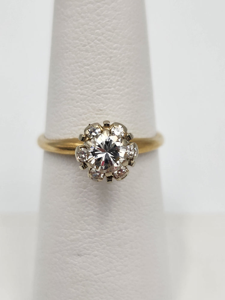 For Sale: (1) e662 Vintage 14kt Yellow Gold Diamond Cluster Engagement Solitare Ring