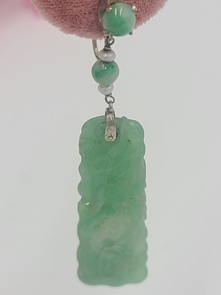 For Sale: (1) k733 Lovely Ladies 14kt White Gold Jade Dangle Earrings (Unpierced)