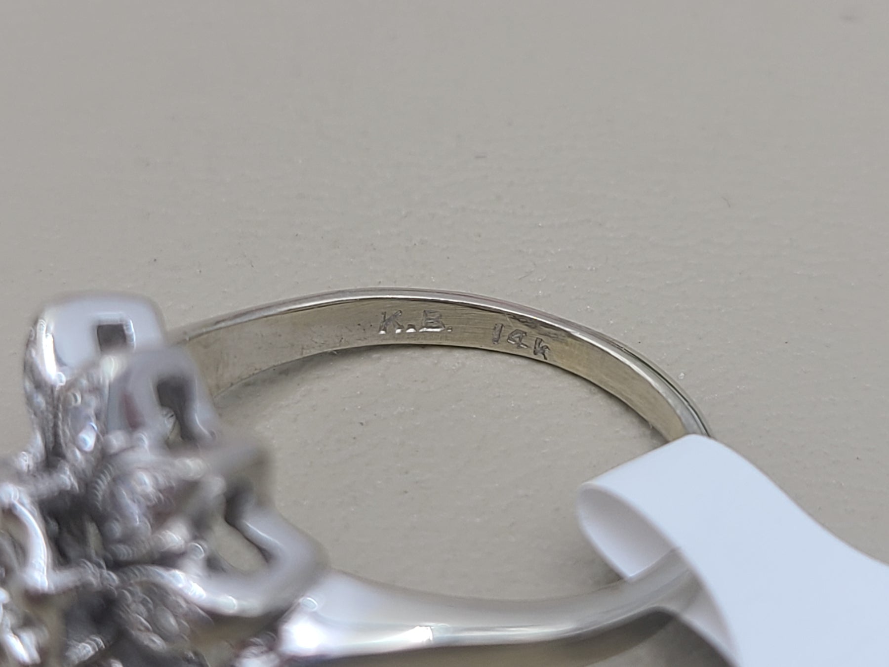 k838 Vintage Ladies 14kt White Gold Flower Style Diamond Ring