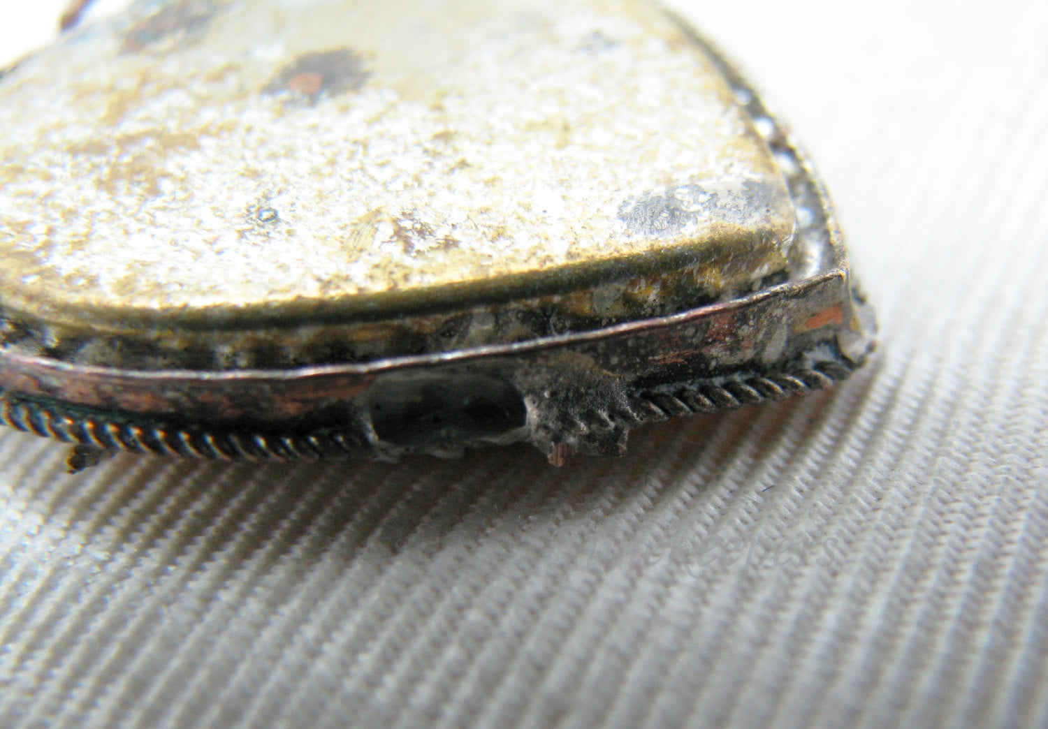 This pendant is in good condition. It appears that a few stones may be missing. The pendant back does have a silver wash over it that is wearing off. This piece is not signed, possibly from ITALY.