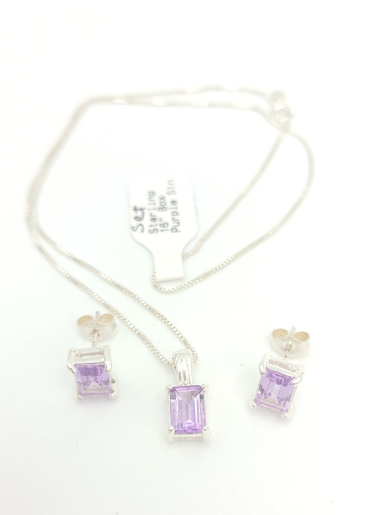 m672 Sterling Silver Purple Stone Earring and 16" Necklace Set
