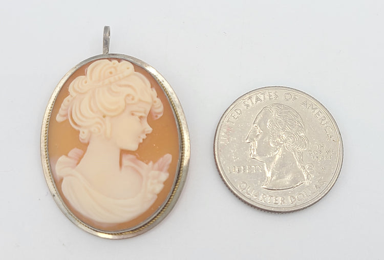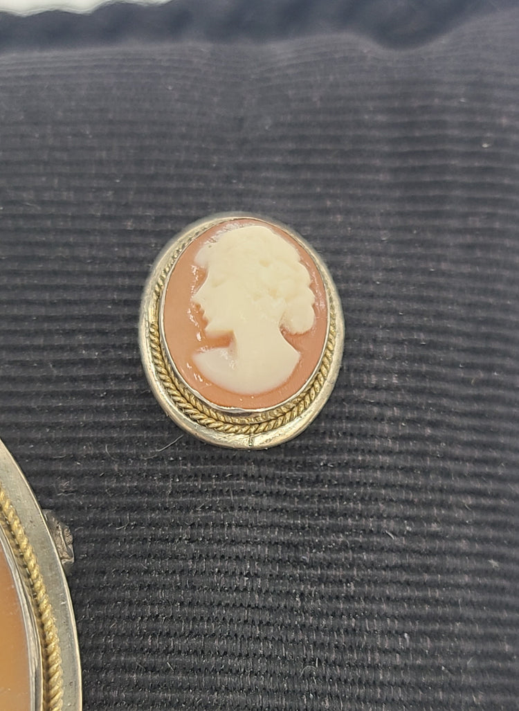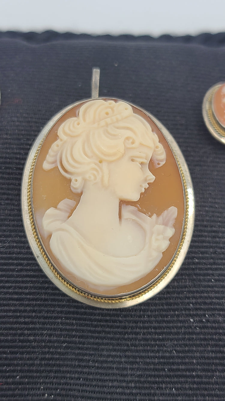 For Sale: (1) m673 Sterling Silver Cameo Earrings and Pendant Set