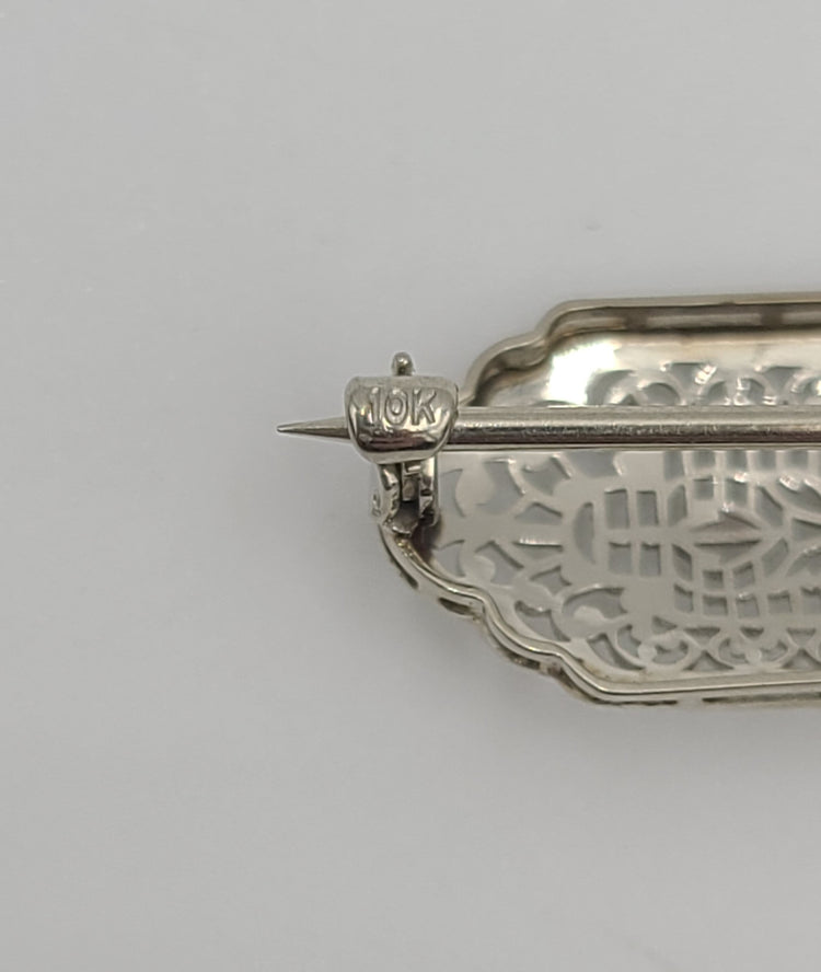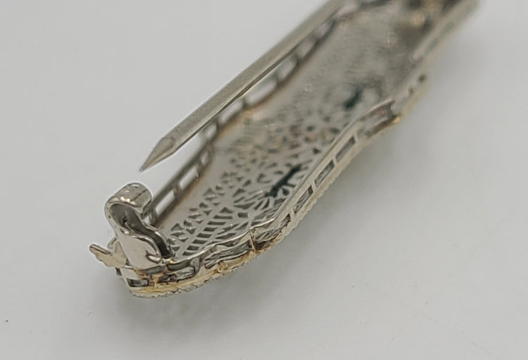 10kt White Gold Diamond and Emerald Bar Pin