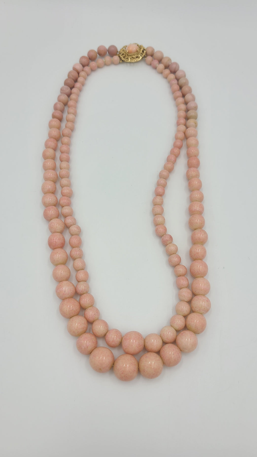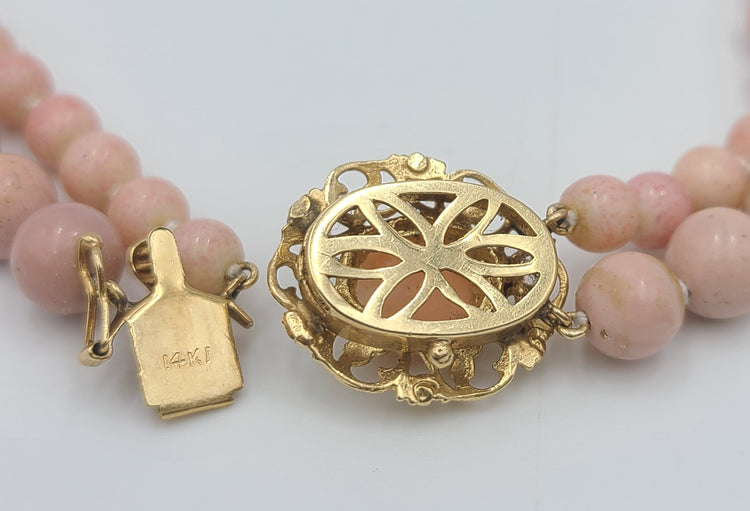m701 Stunning Double Strand Angel Skin Coral Beaded Necklace with 14kt Yellow Gold Lock