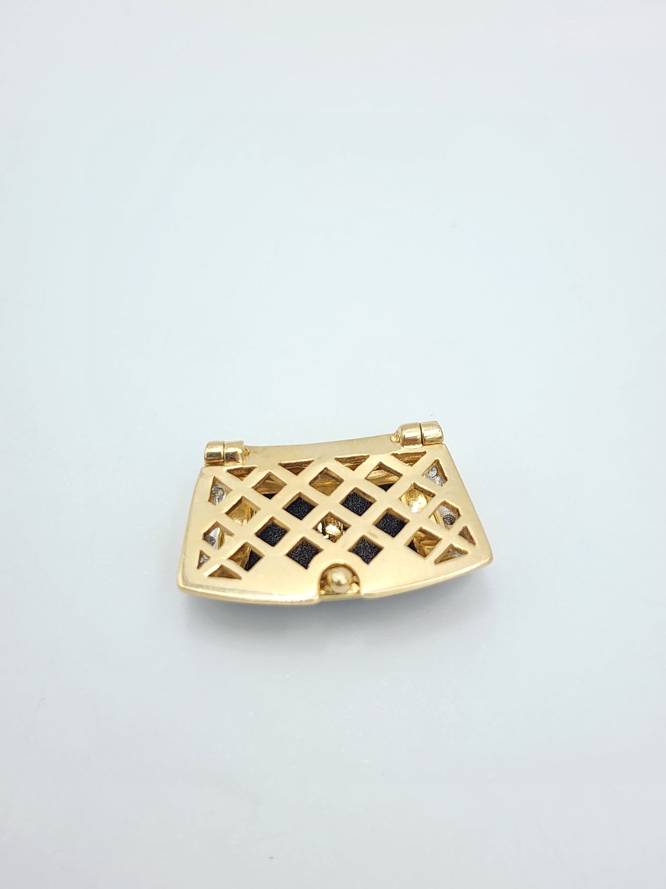 For Sale: m725 Vintage 14kt Yellow Gold Onyx and Diamond Slide Pendant