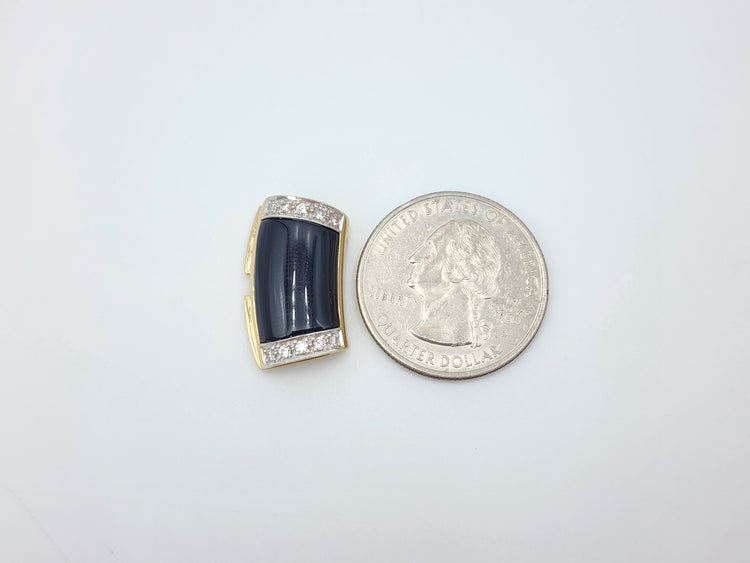 m725 Vintage 14kt Yellow Gold Onyx and Diamond Slide Pendant
