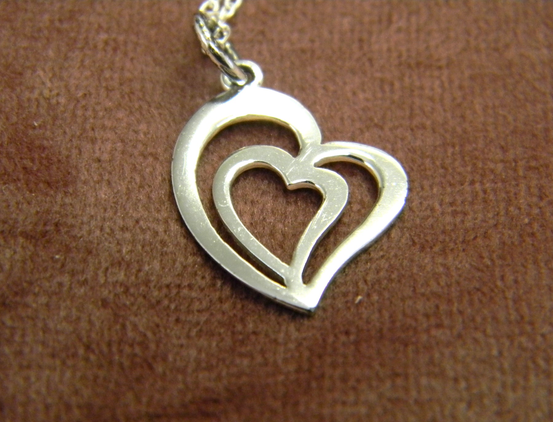For Sale: (1) Stunning Double heart Pendant on a Rolo Chain all in Sterling