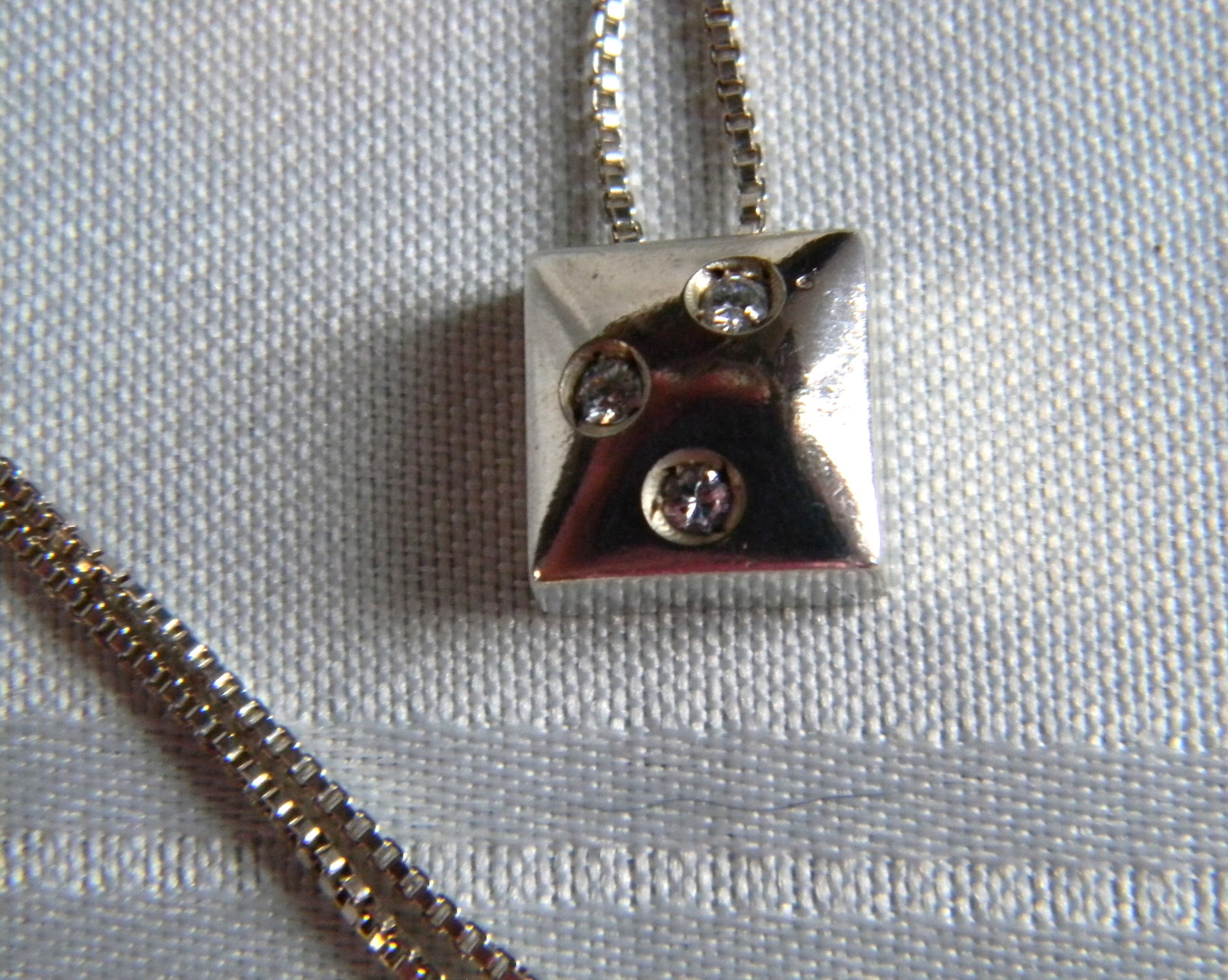 p486 Stunning Sterling Silver Square Shaped Pendant and Box Chain