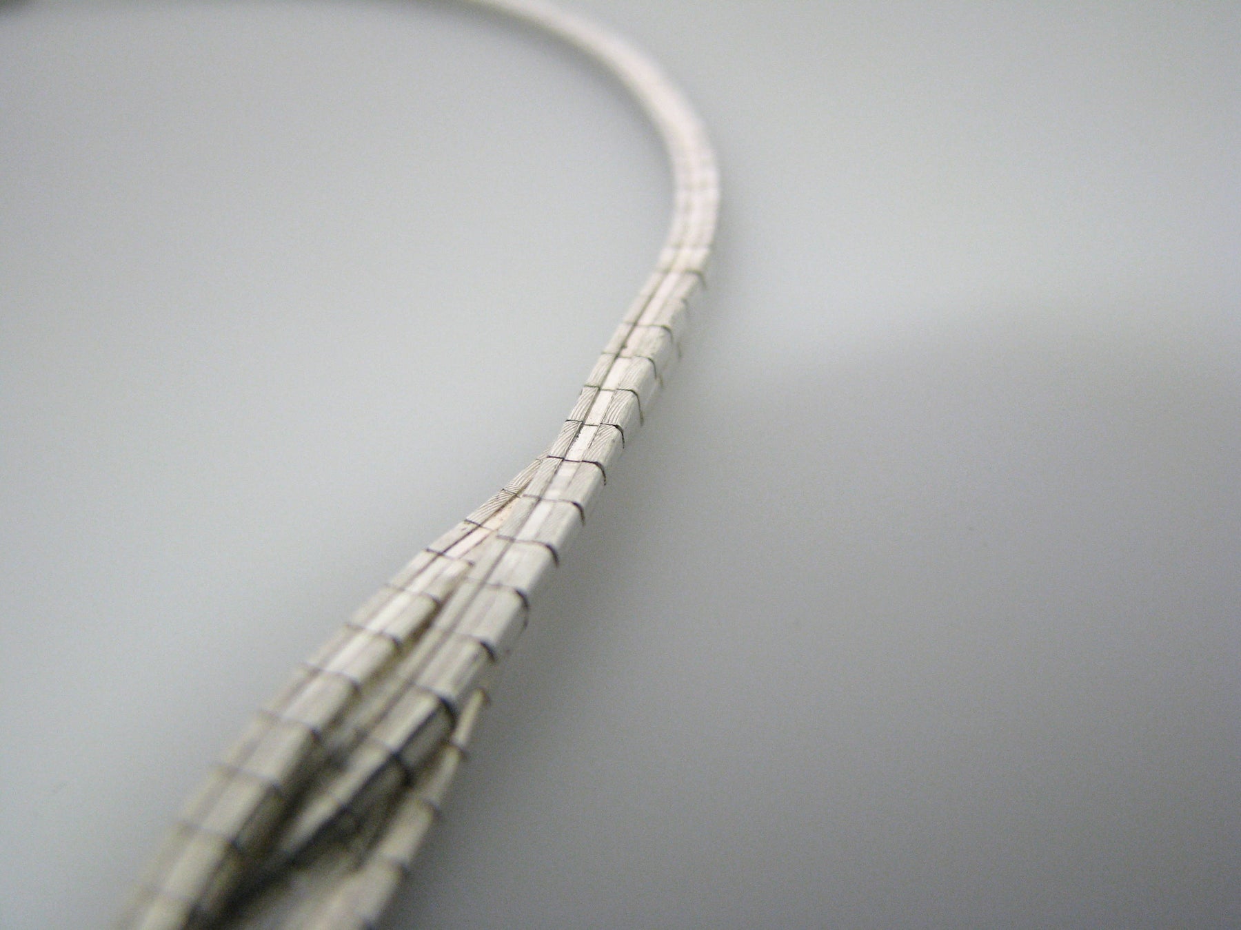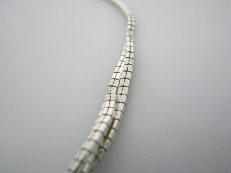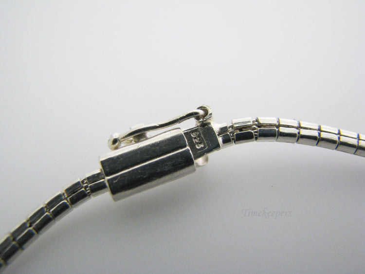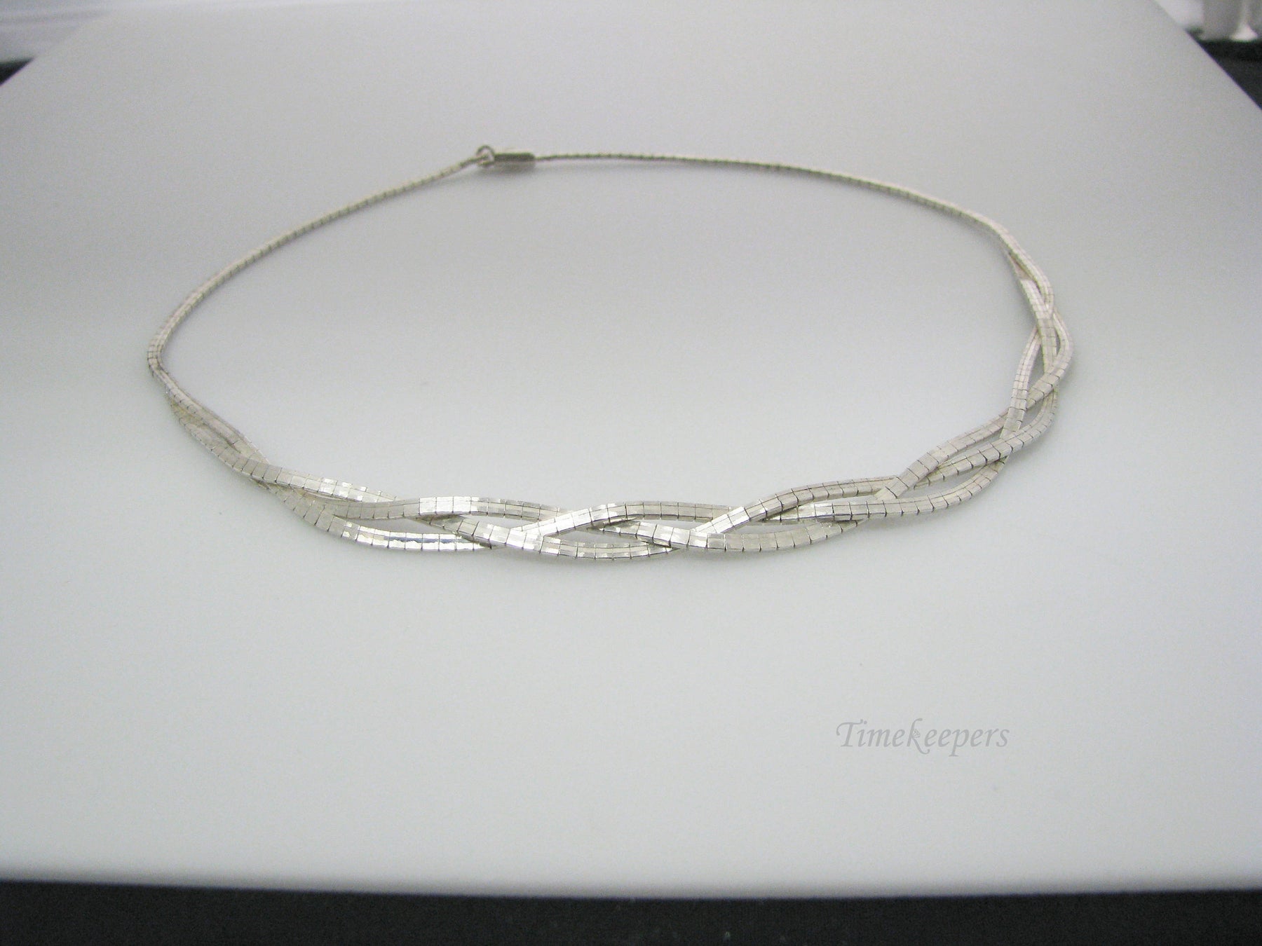 This pretty choker features a braided design half way around with a double locking clasp. This is marked 925. No kinks in chain. This chain could use a little cleaning.