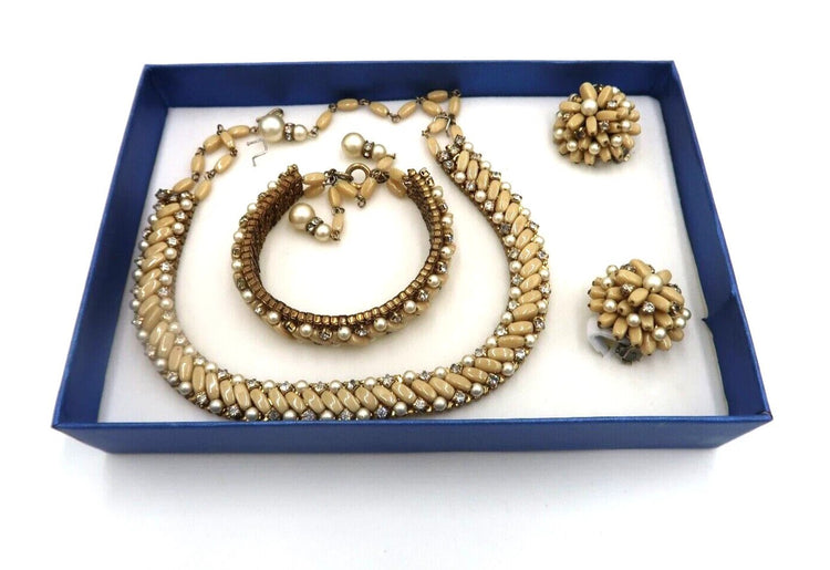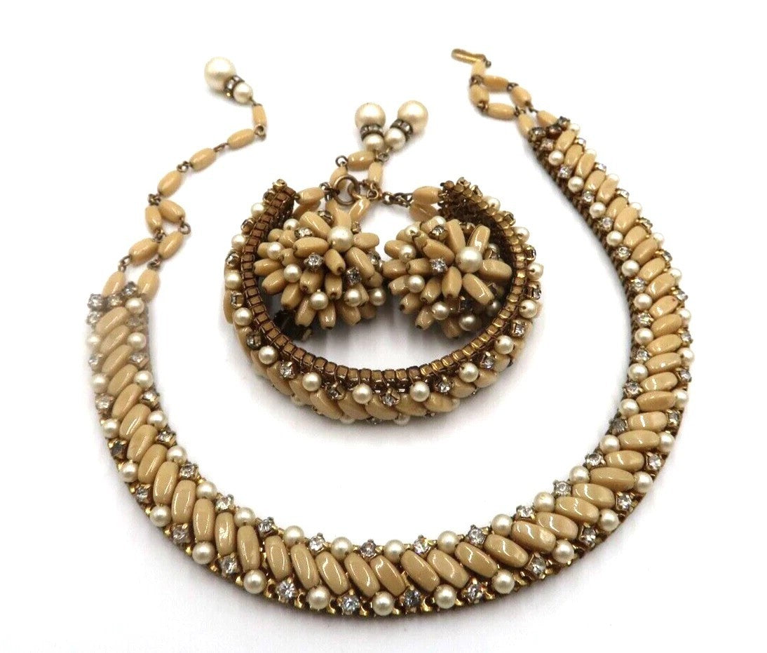 For sale: (1) t413 VINTAGE Beautiful Necklace, Clip Earrings and matching Bracelet