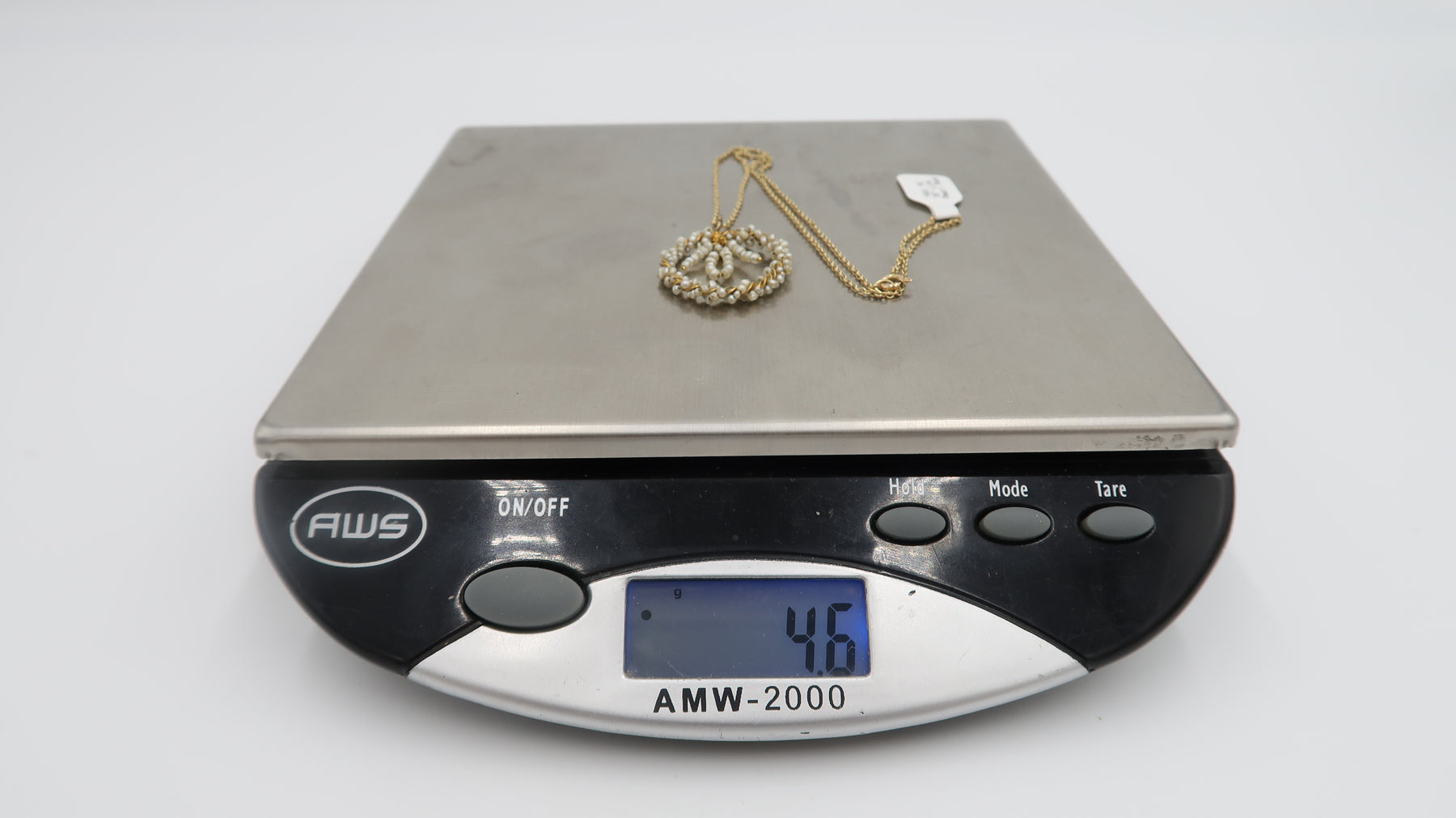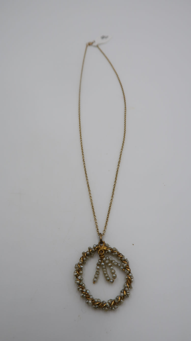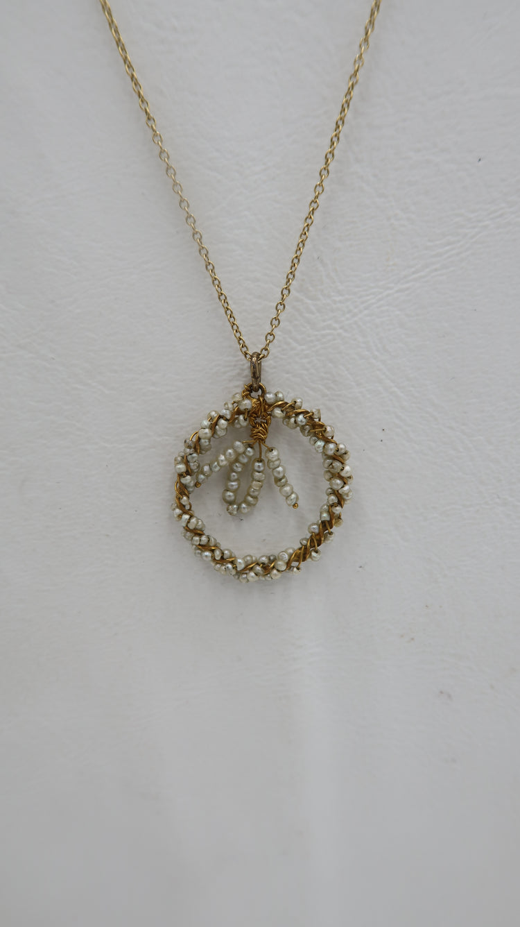 For Sale: (1) t532 14k Yellow Gold Open Seed Pearl Pendant Necklace 16",4.6g