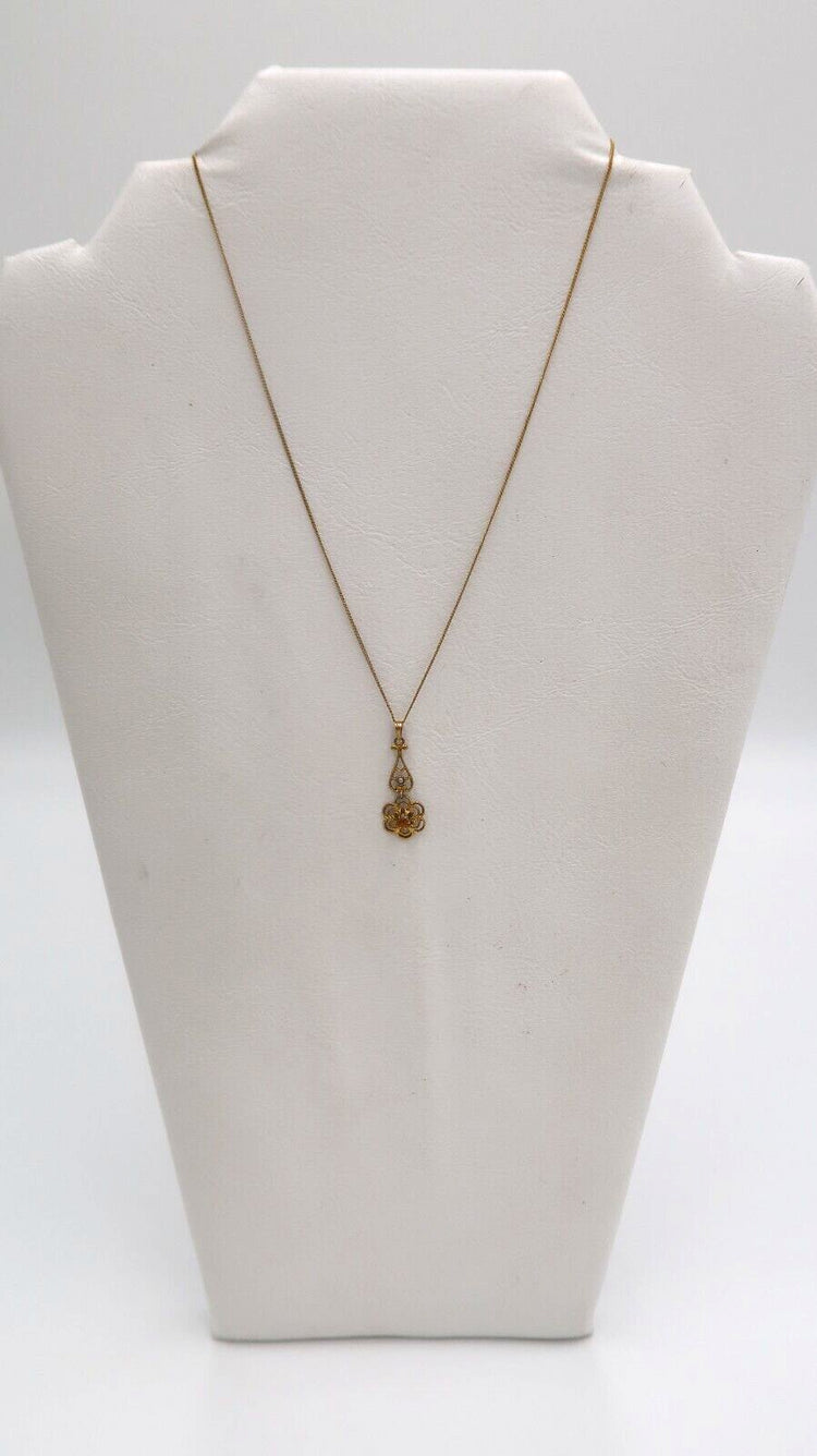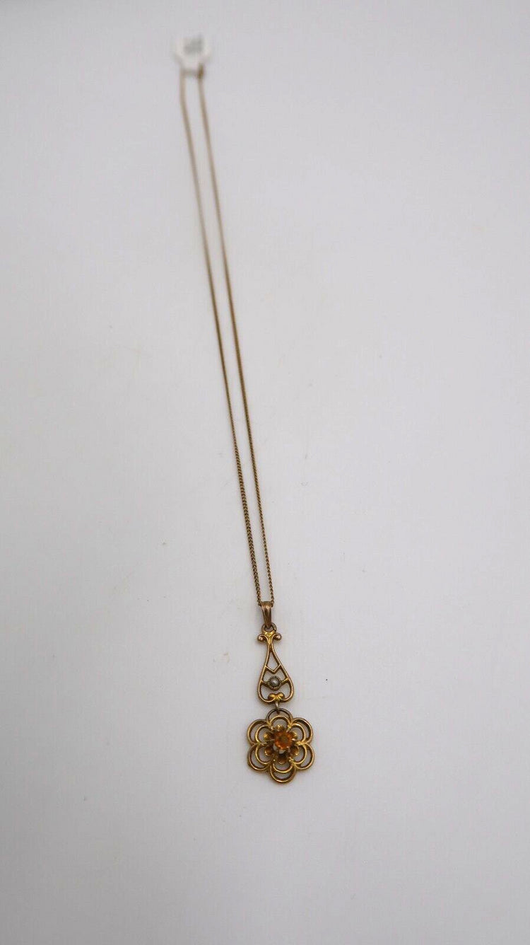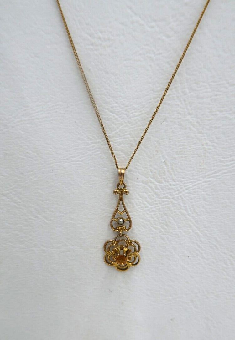 For Sale: (1) t539 Antique 10k Yellow Gold Topaz Buttercup Pendant Chain Necklace 15"