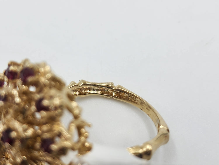 For Sale: (1) u973 Pretty Ruby and Opal Cluster Ring set in 14kt Yellow Gold