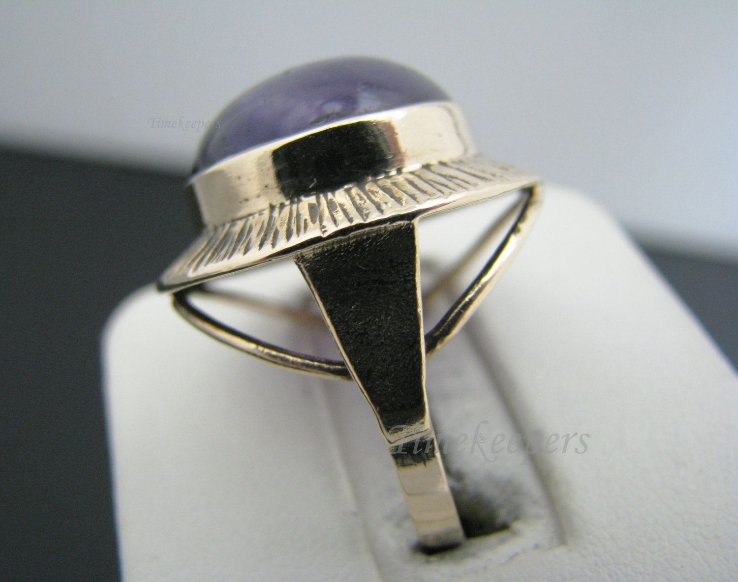 For Sale: (1) Unique Vintage 9 k Yellow Gold Ring with Large Purple Stone