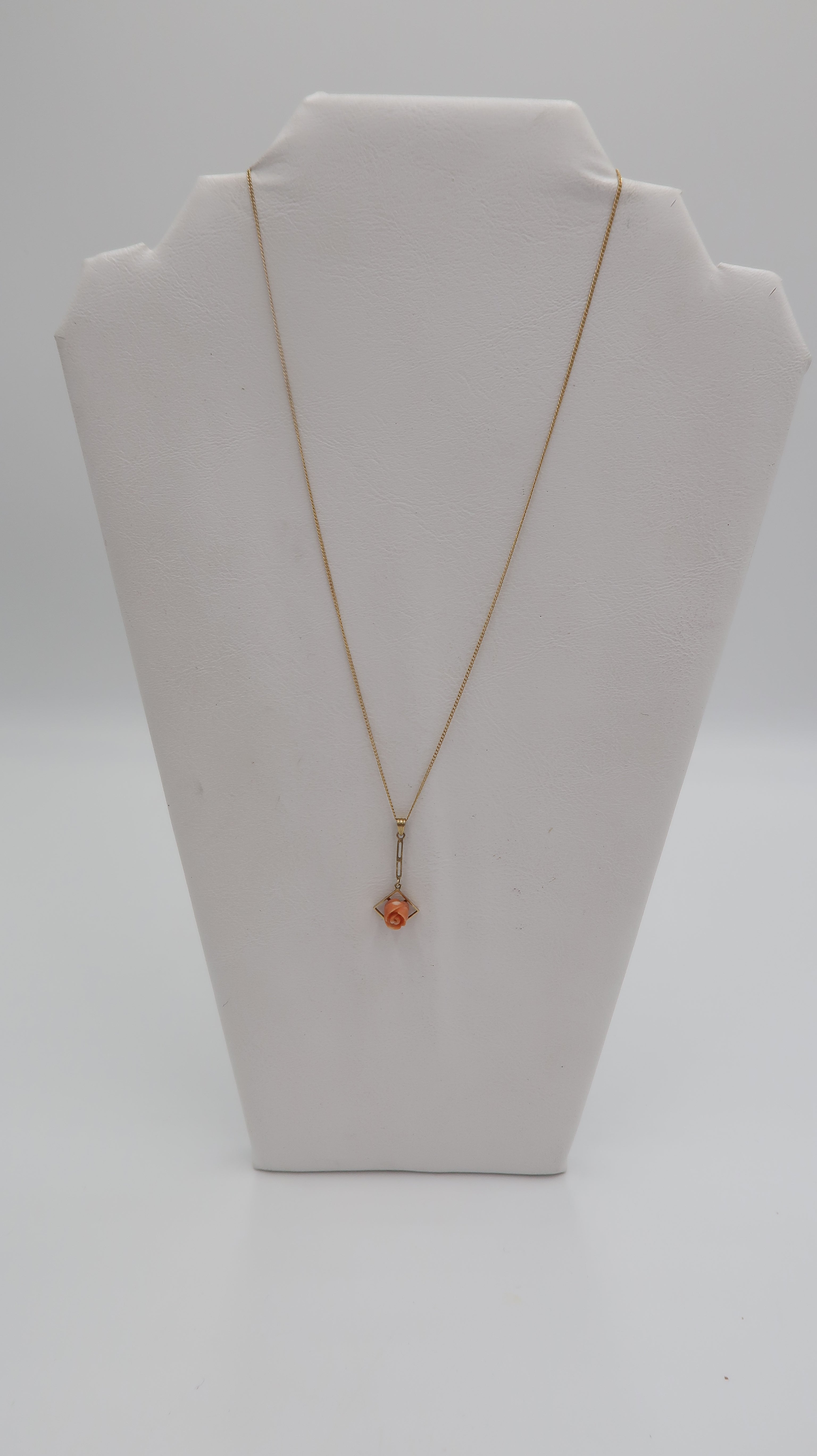 t541 18" Gold Filled Chain with 10k Coral Pendant Necklace