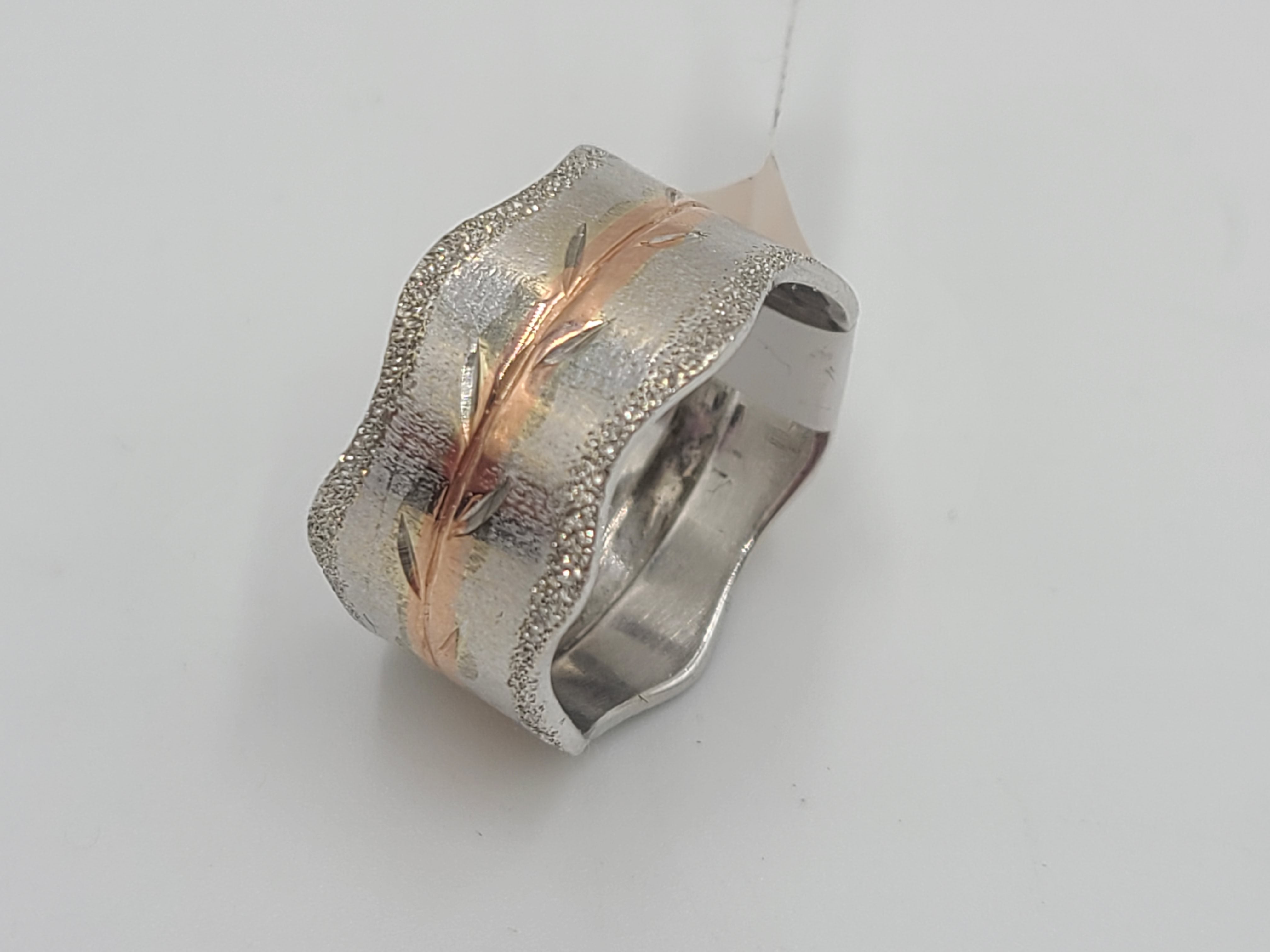 k785 Brushed Two Toned 14kt White & Rose Gold Wedding Band with Stardust Edging